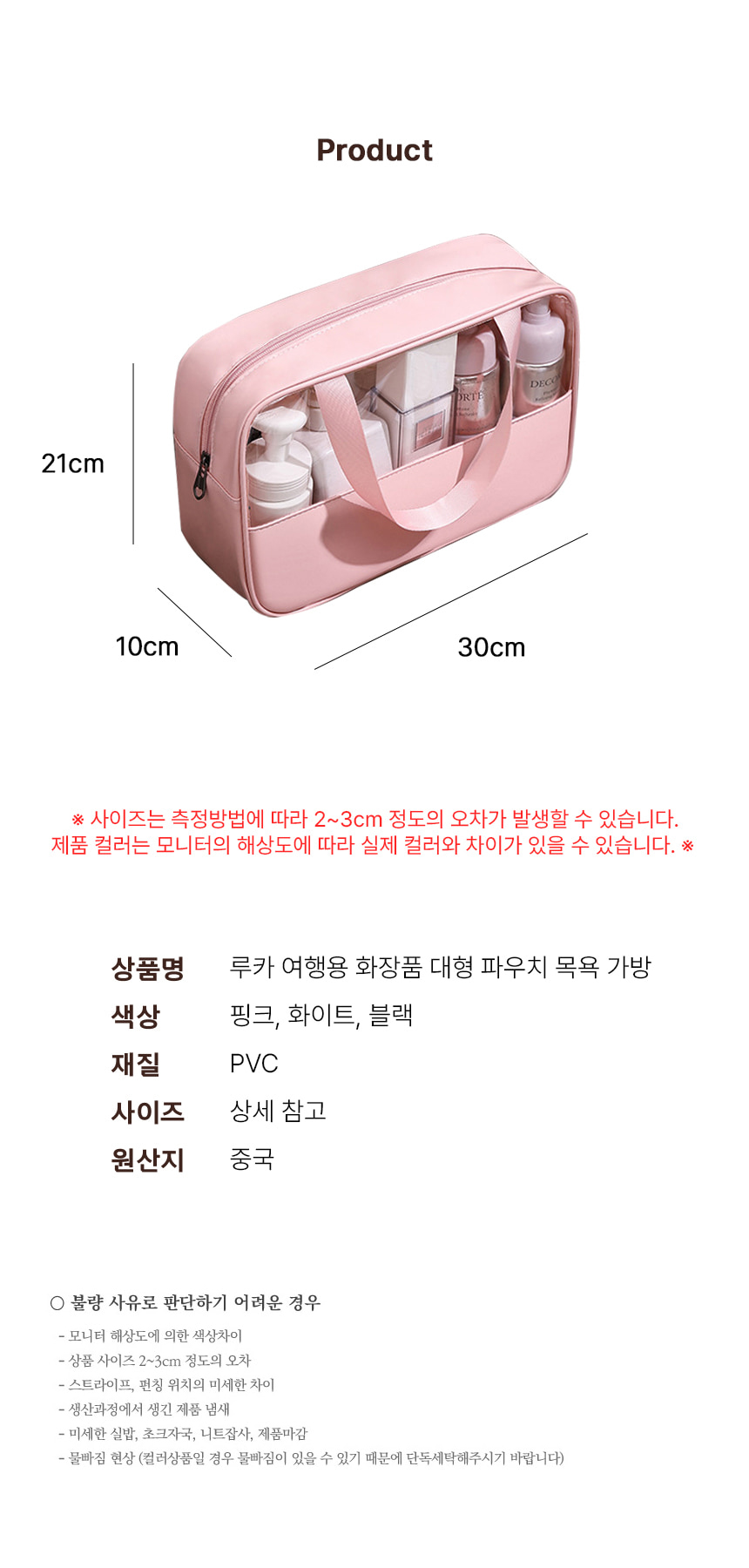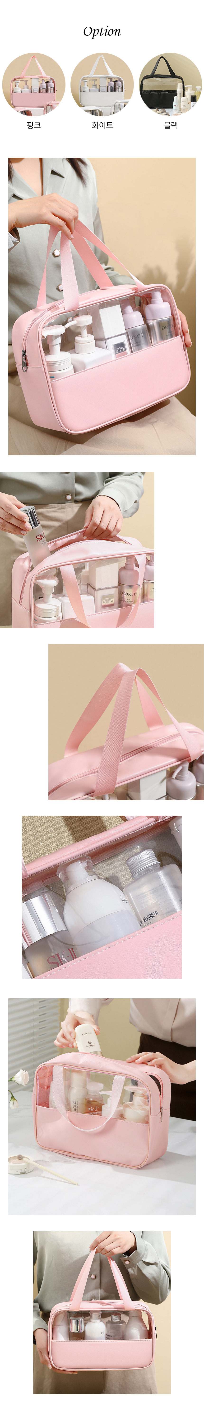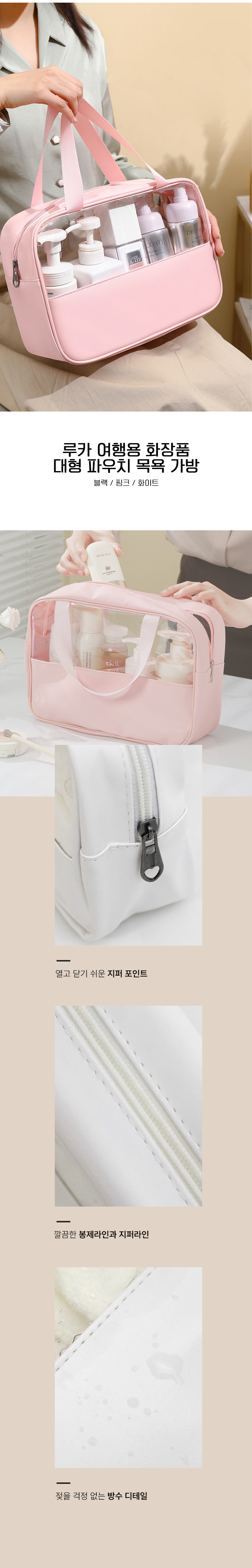 화장품 대형 방수 메이크업 지퍼 파우치 가방 핑크