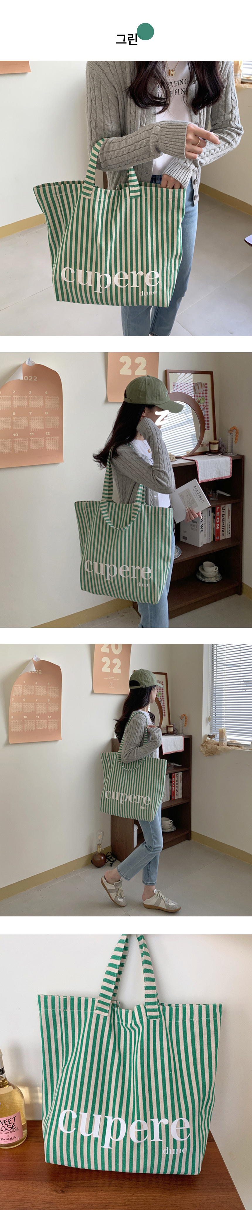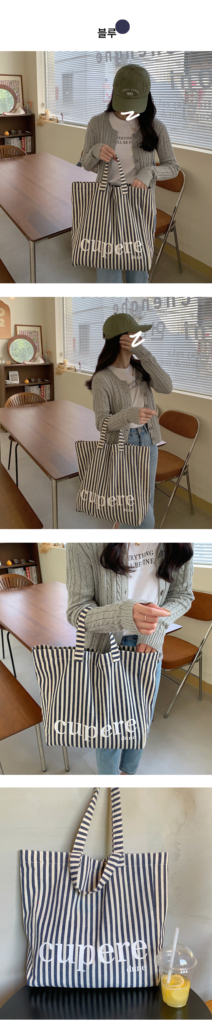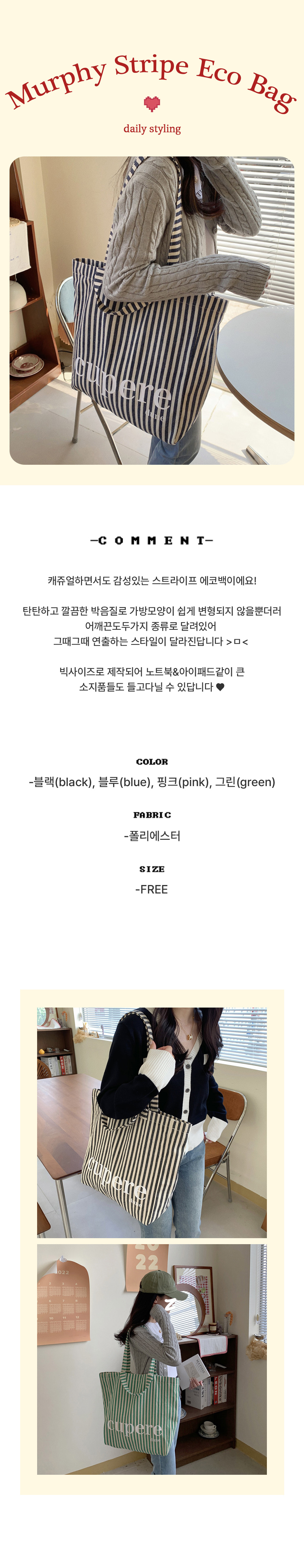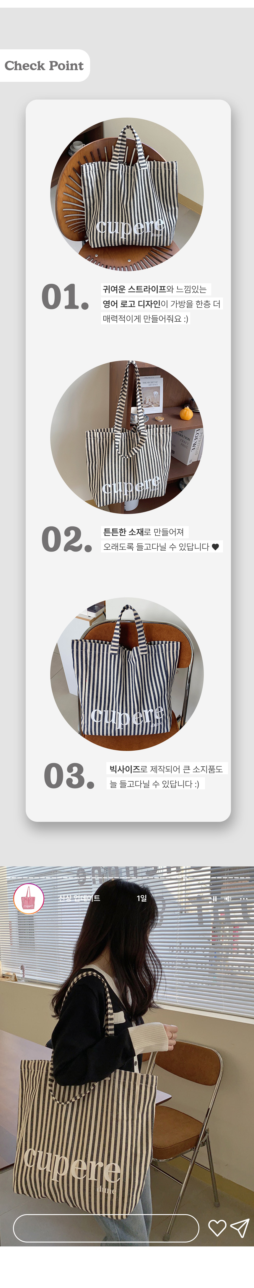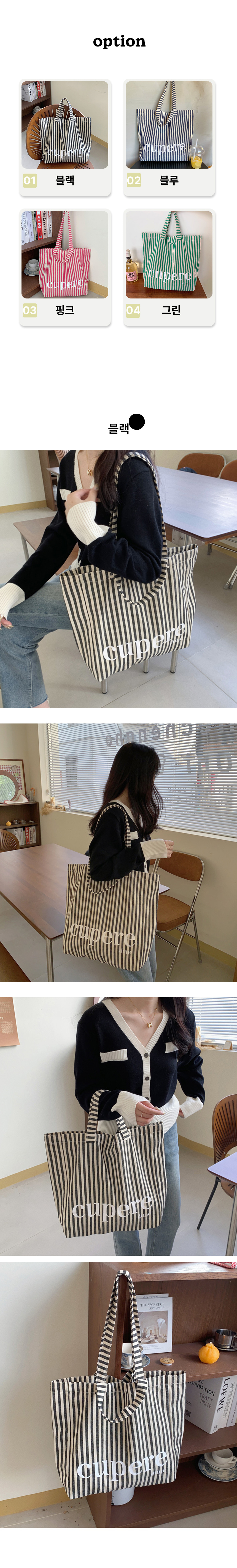 대학생 보부상 스트라이프 숄더 에코 백 가방 핑크