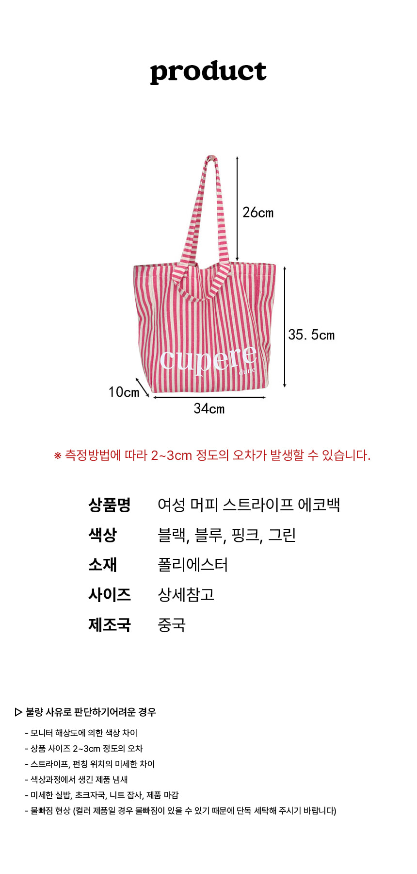 제품하자가 아닌 소비자의 단순변심, 착오구매에 따른 청약철회가 불가능한 경우 그 구체적 사유와 근거 배송ㆍ교환ㆍ반품 상세설명페이지 참고
