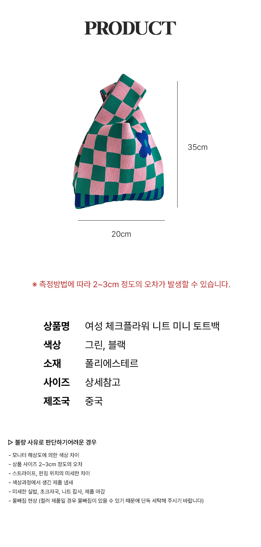 여성 미니 니트 토트 백 데일리 스몰 손 가방