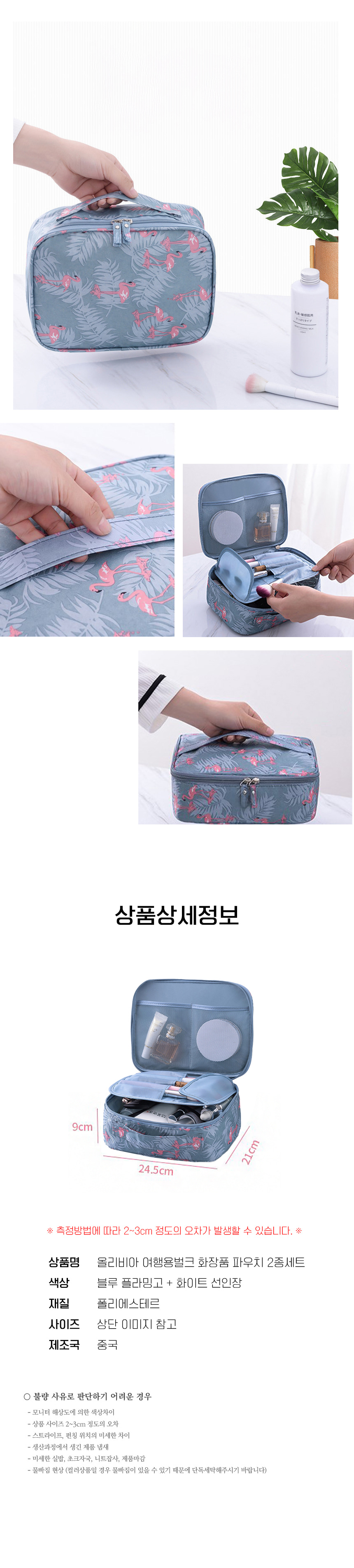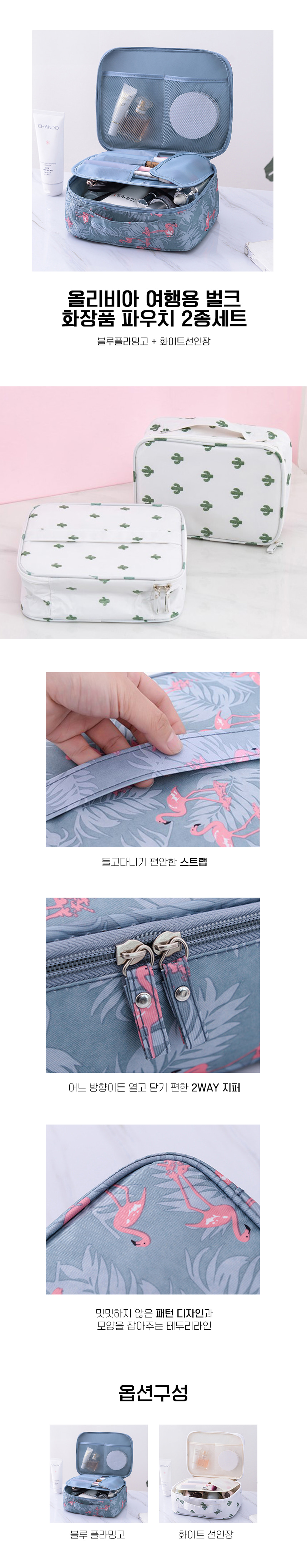 여행용 지퍼 손잡이 화장품 파우치 가방 2종 세트