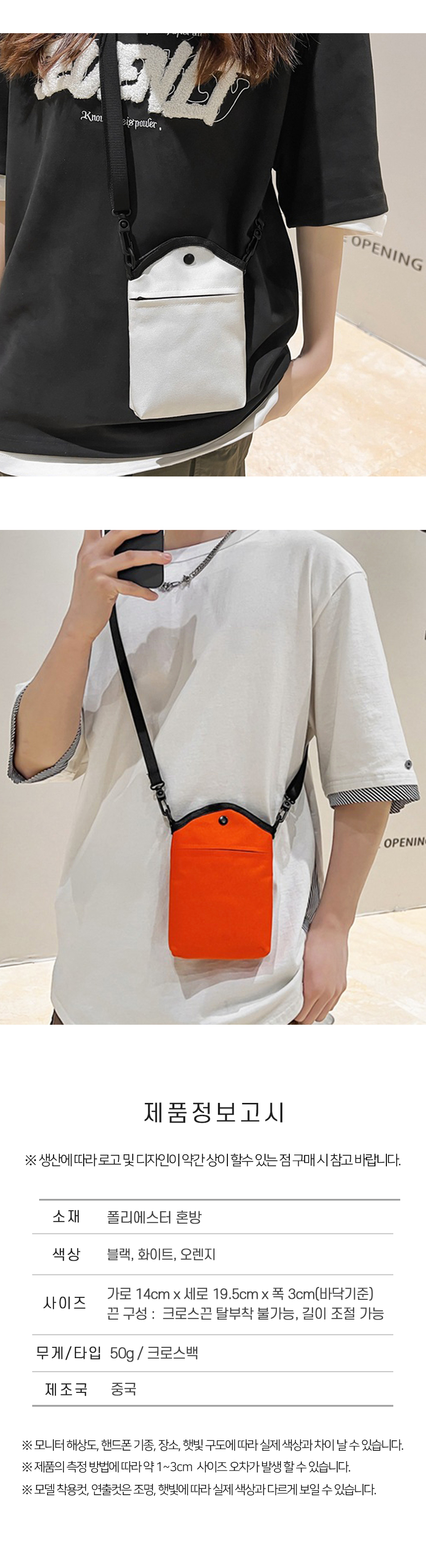 여행용 미니 핸드폰 크로스 백 가벼운 여성 가방 주황
