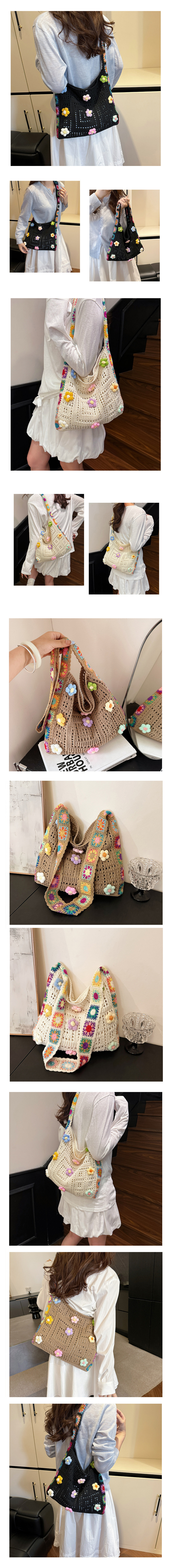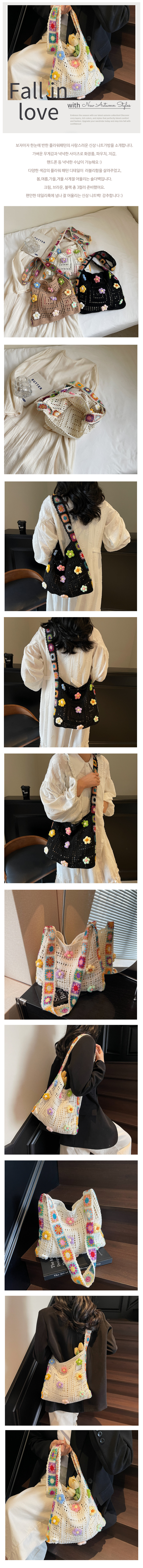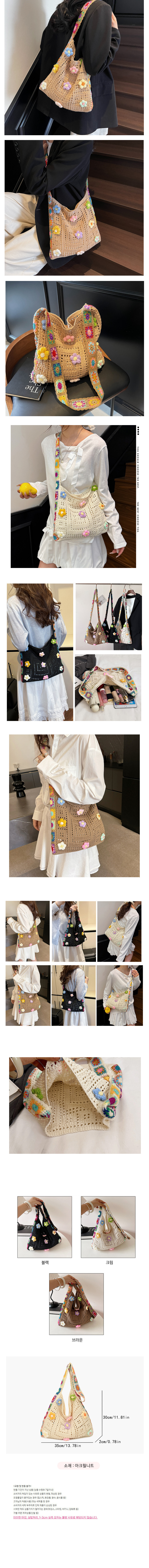여자 꽃무늬 니트 가방 대학생 직장인 숄더 백 블랙