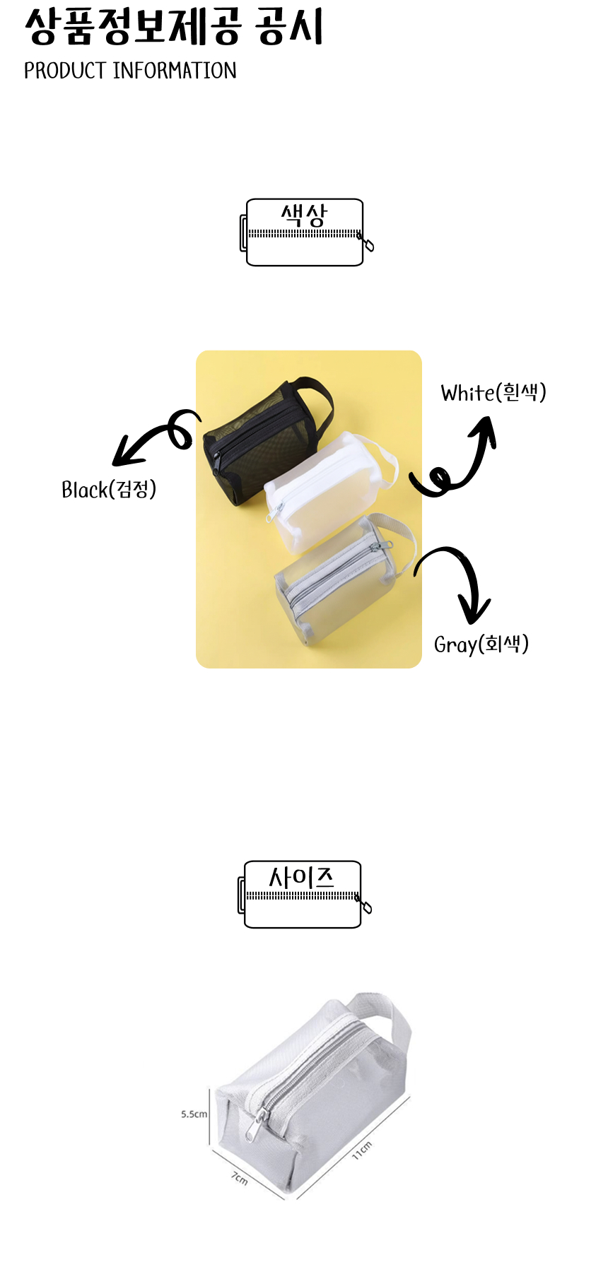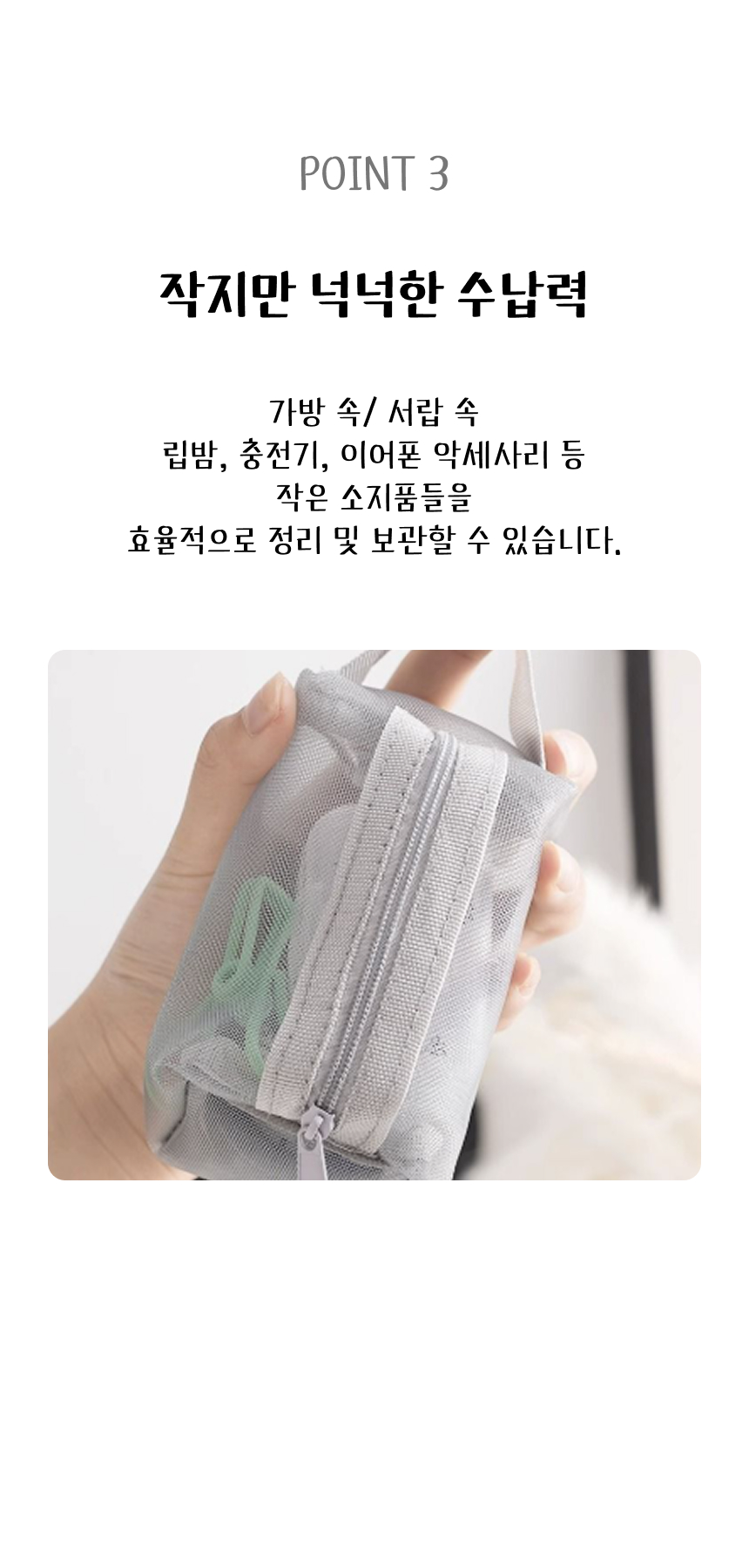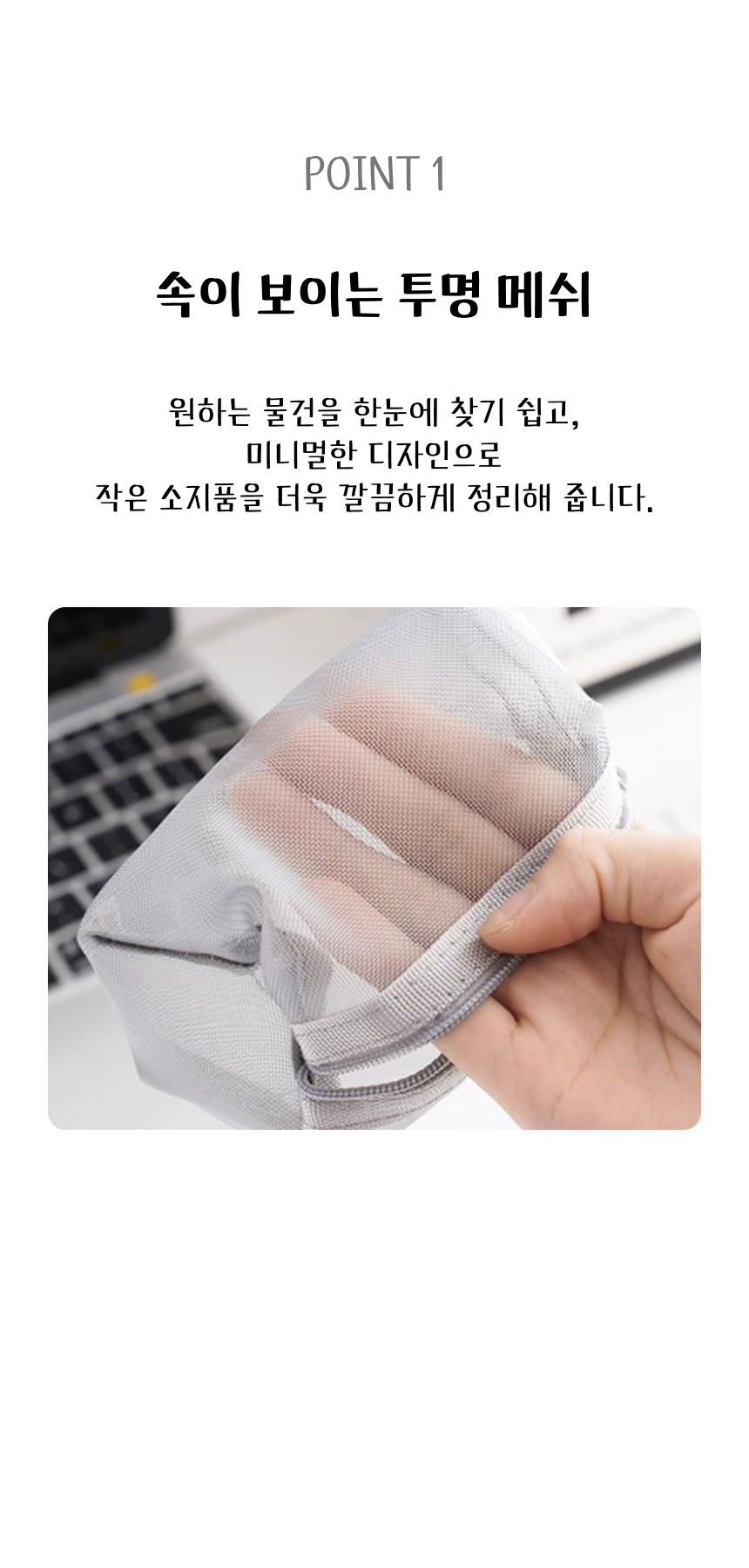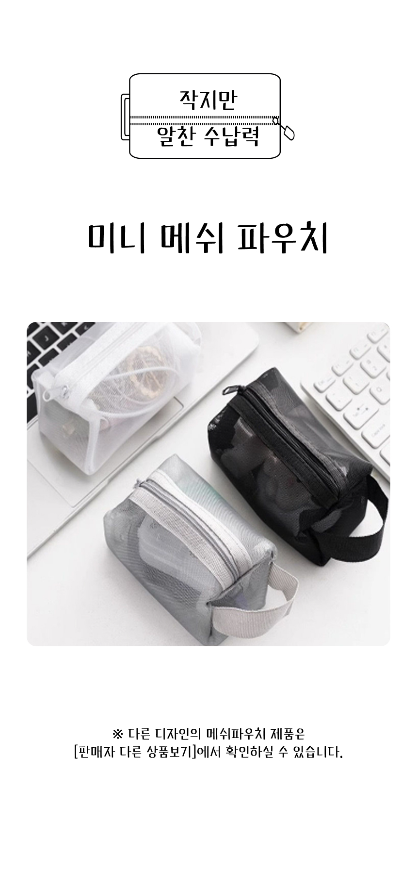다용도 미니 원형 메쉬 파우치 (블랙/그레이/화이트)