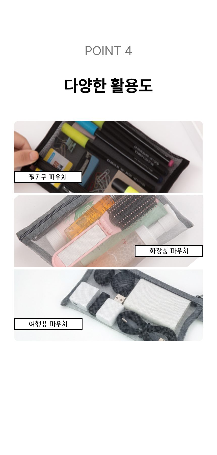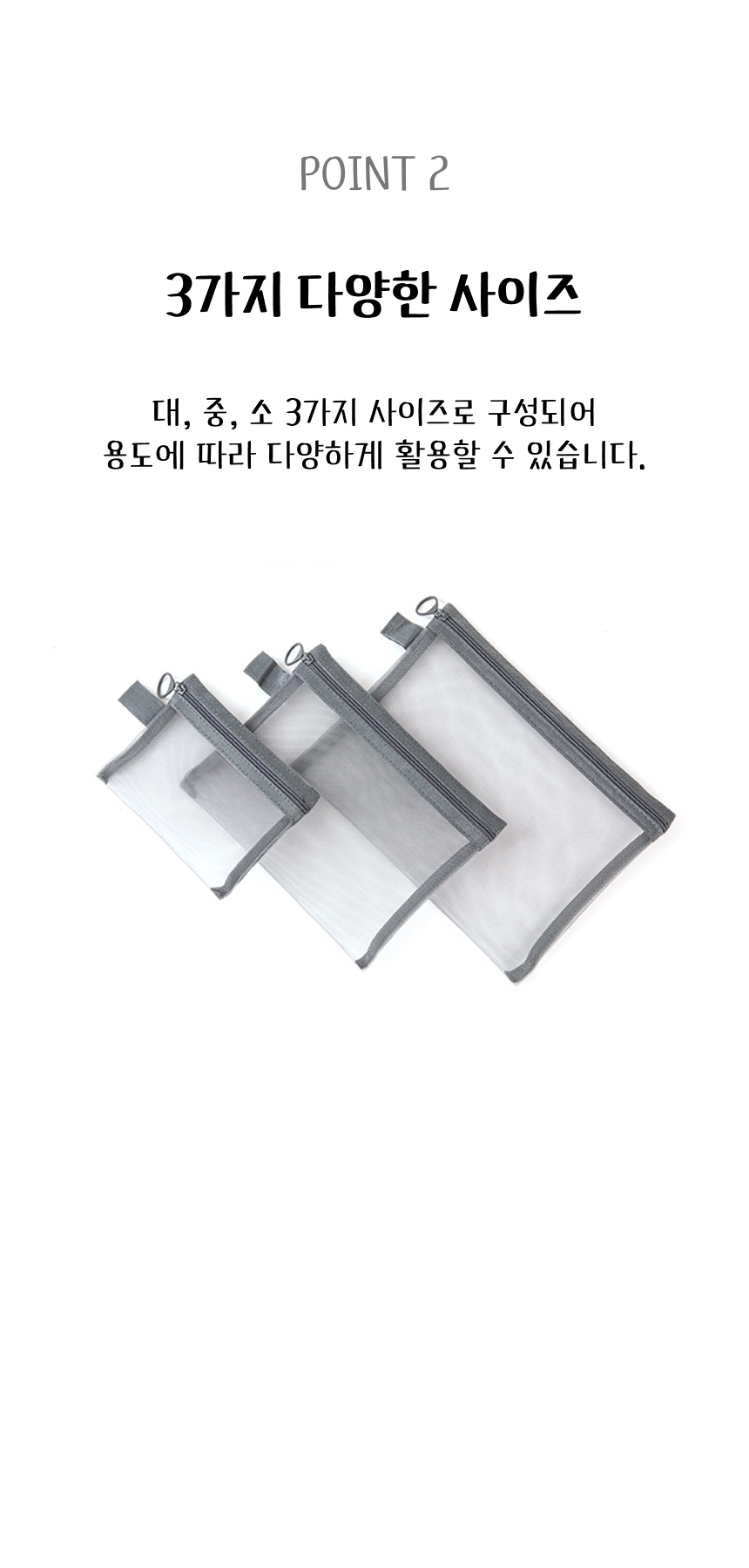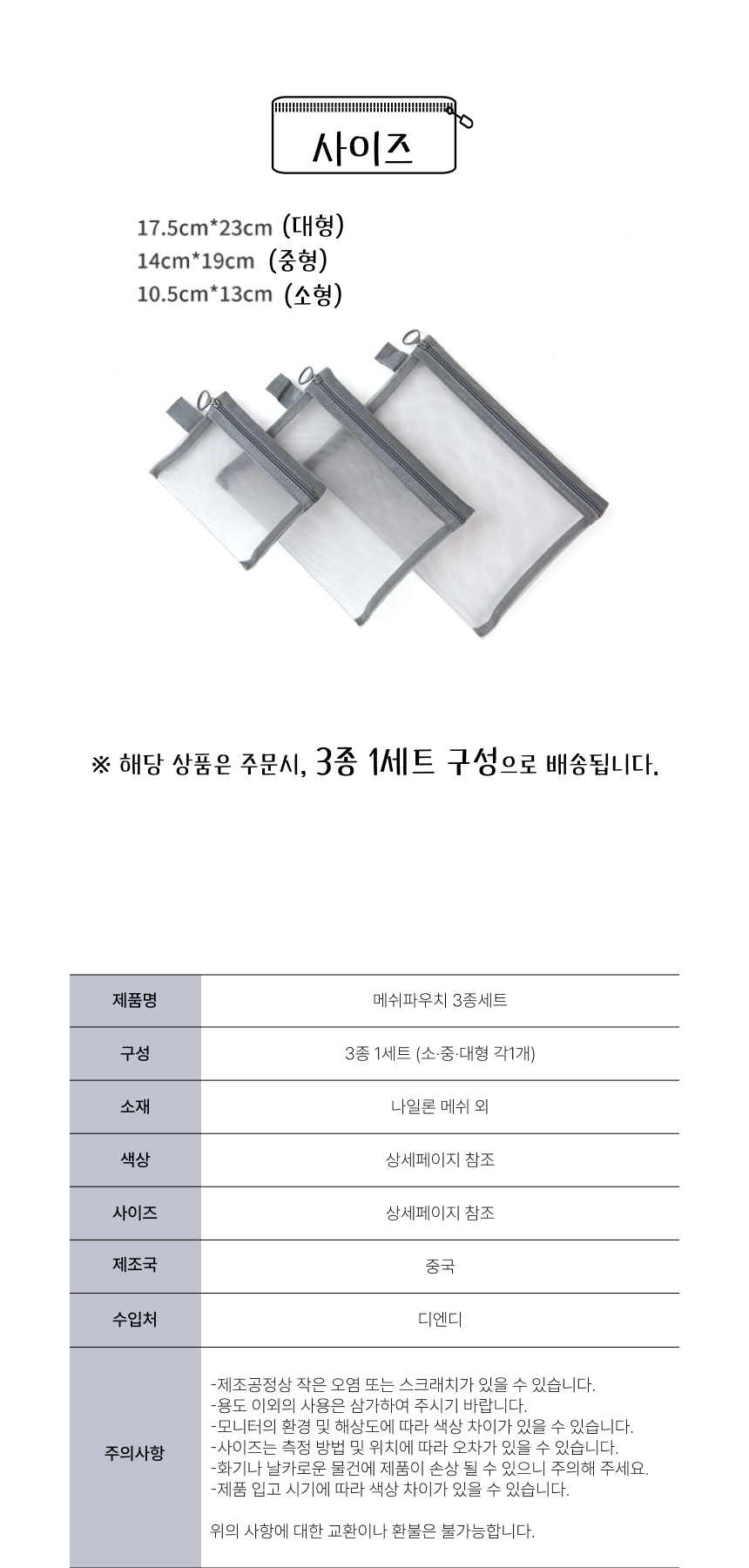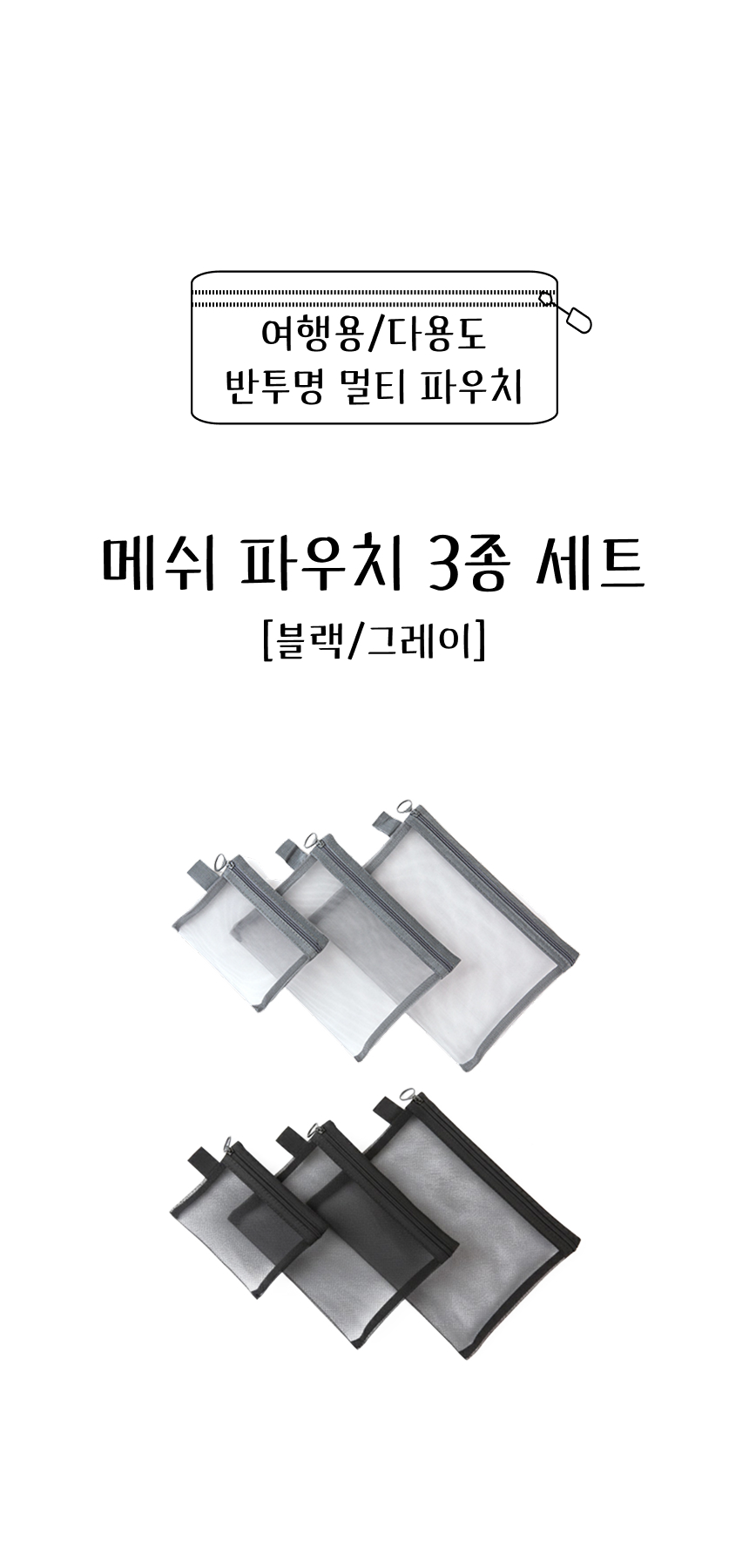 다용도 메쉬 파우치 3종 세트 (블랙/그레이)