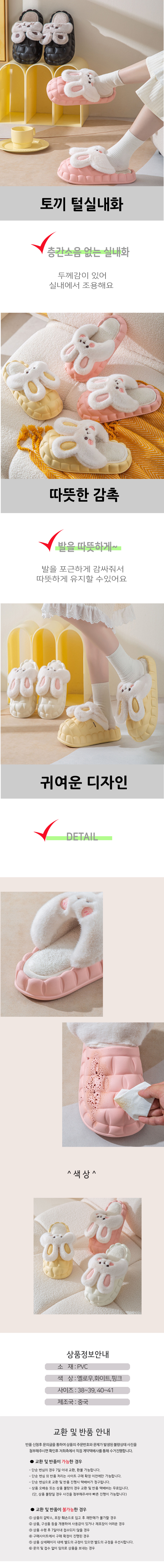 거실화 보온실내화 층간소음 토끼 슬리퍼