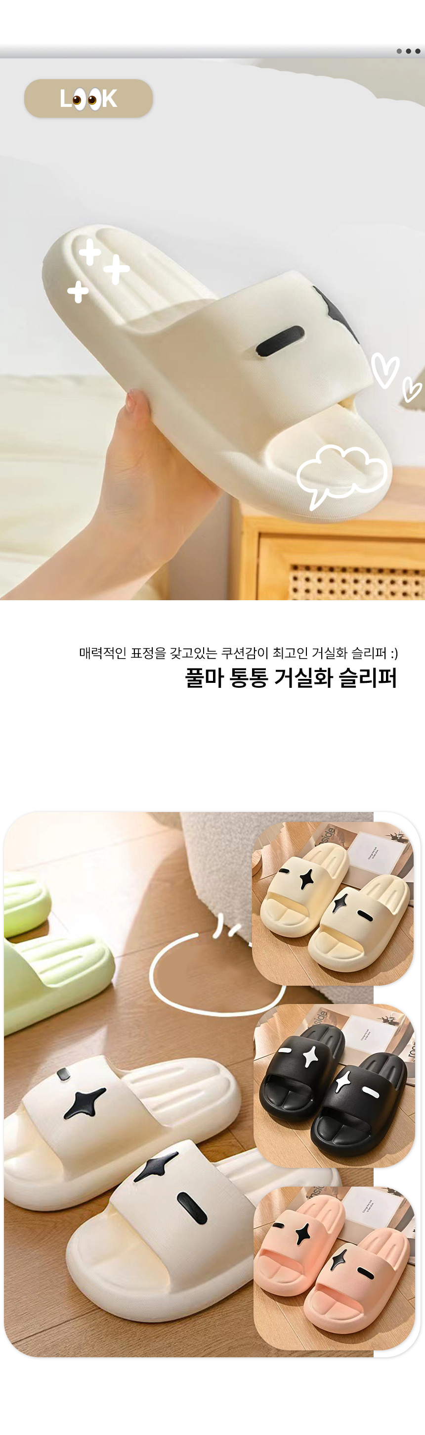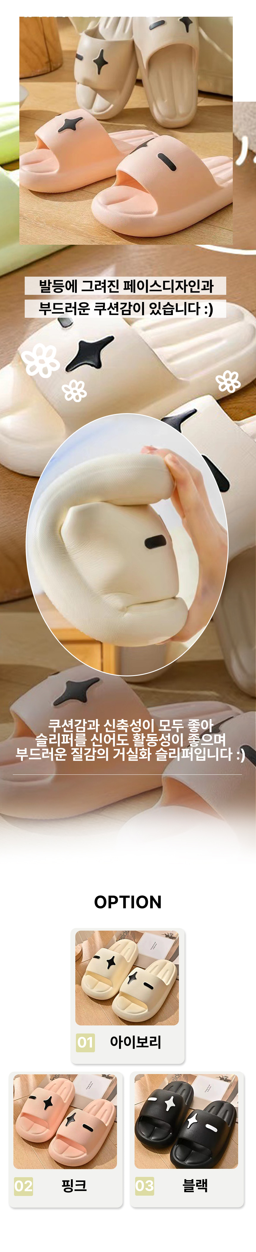여성 홈 거실 실내화 학생 쿠션 슬리퍼 ivory 240-245