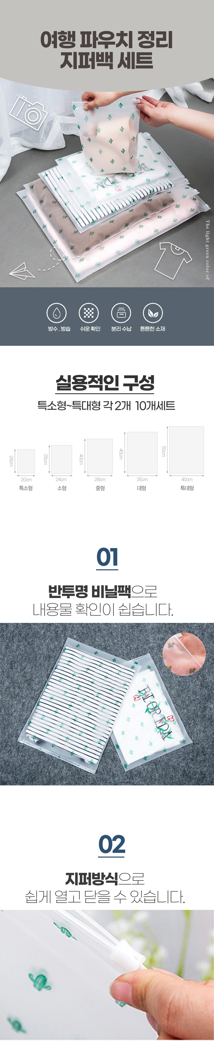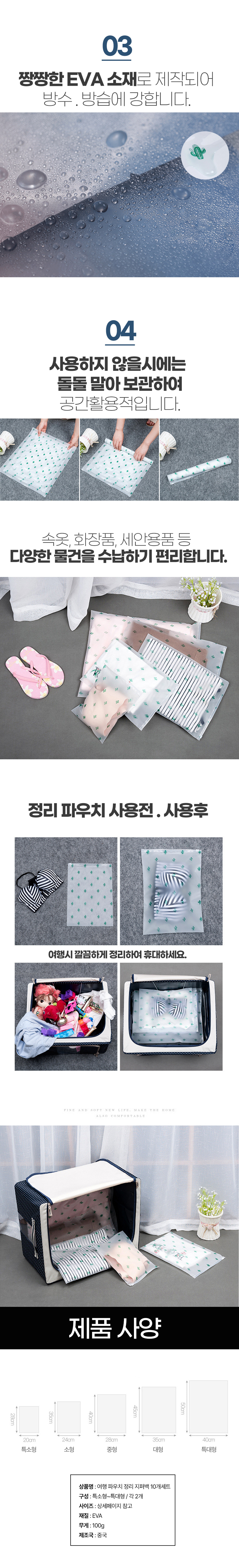여행 캐리어 정리 지퍼 백 속옷 세면 파우치 10P 세트