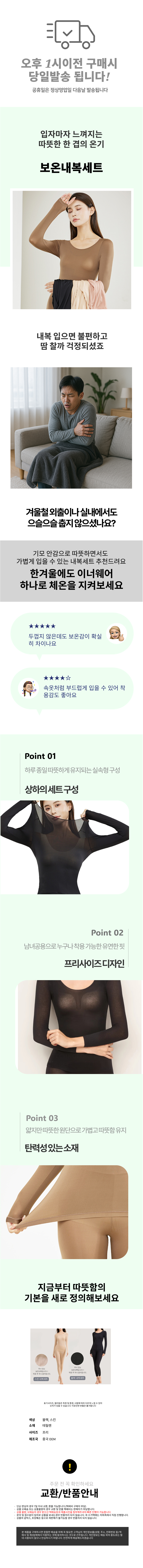 부드러운 프리사이즈 보온내의 상하의세트 이너웨어