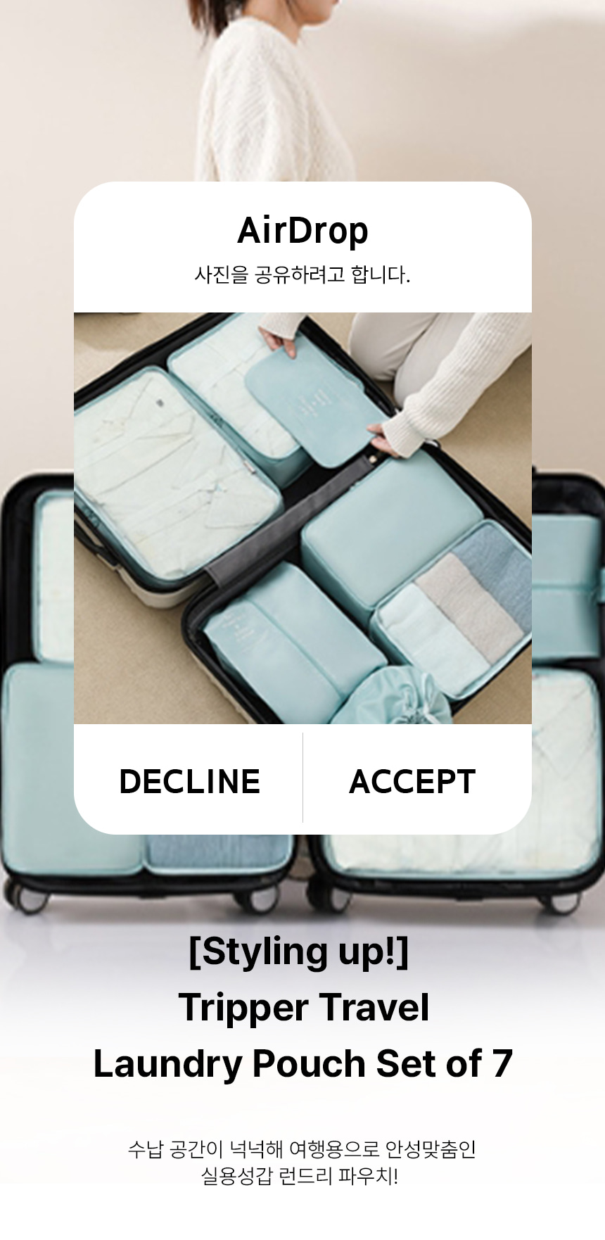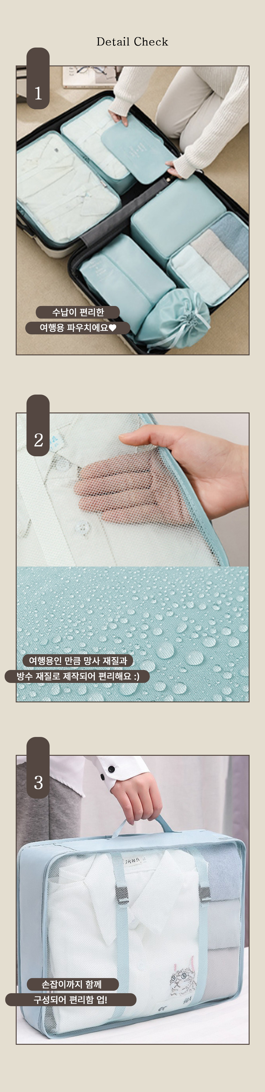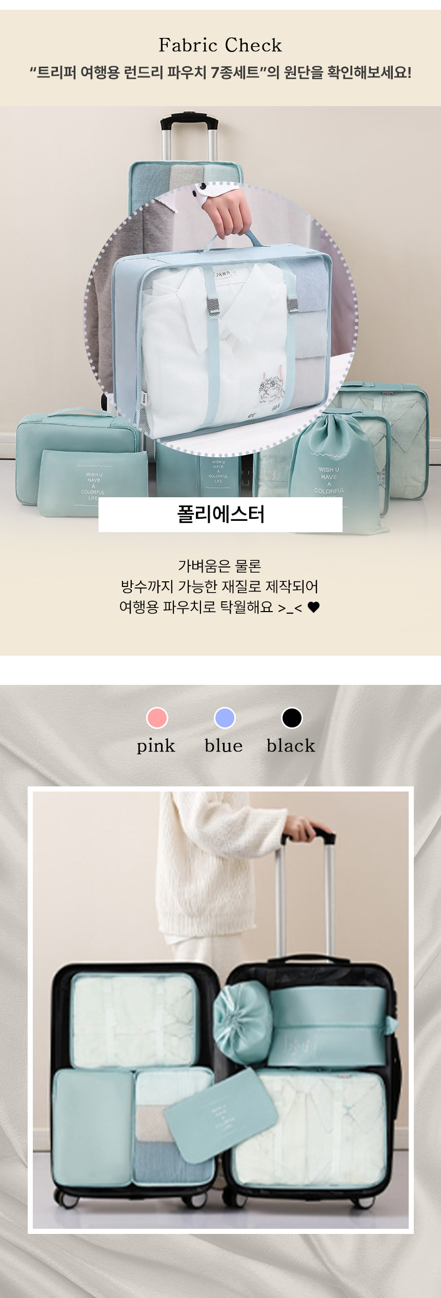 여행 캐리어 이너 백 옷 정리 파우치 7종 세트 블랙