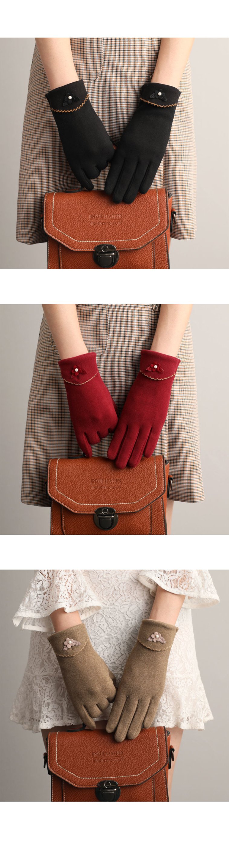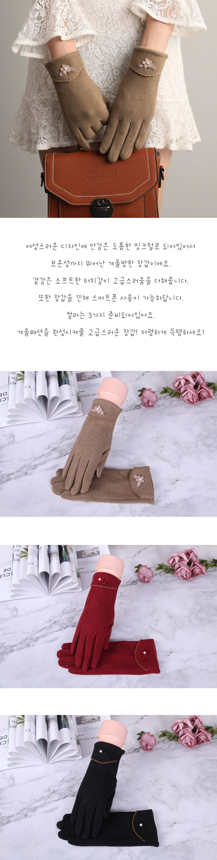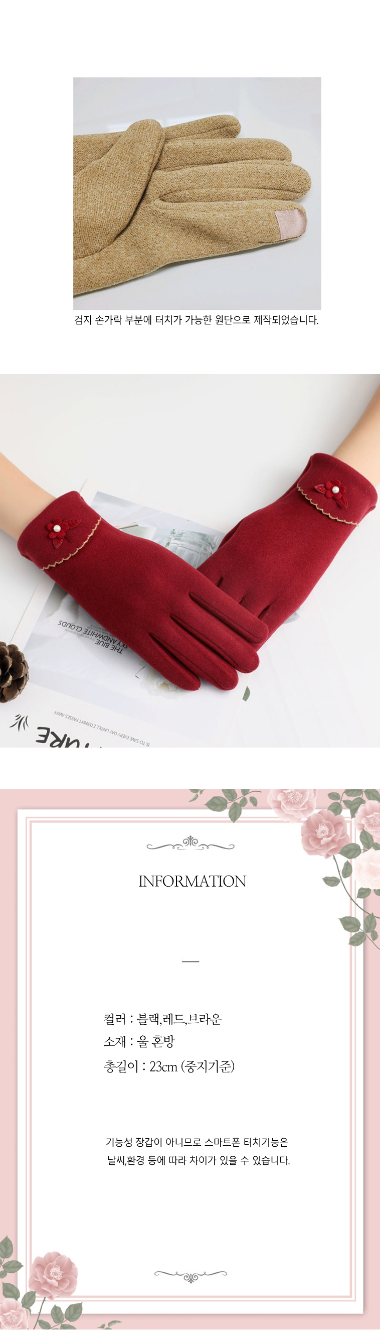 여성 겨울 방한 따뜻한 예쁜 손가락 울 장갑 레드