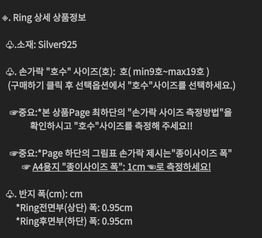 치수 제품 상세 설명 참조