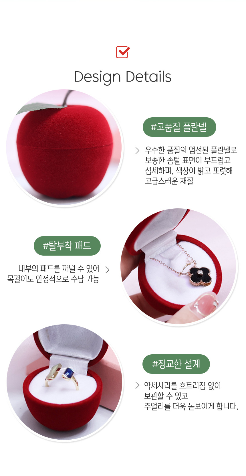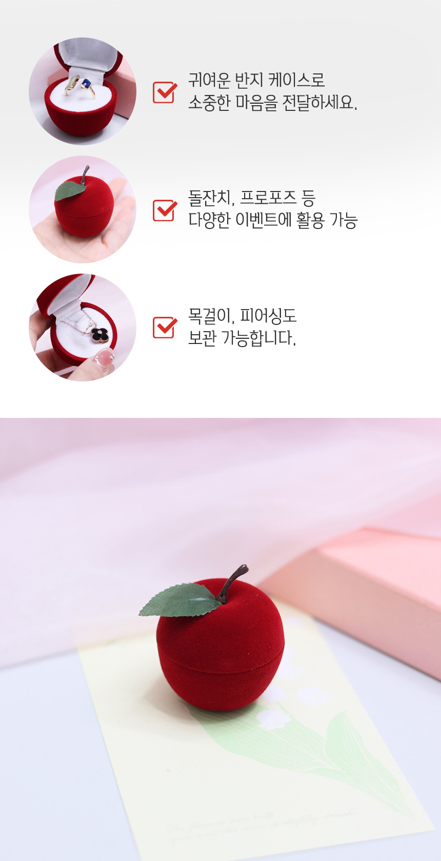 느낌상점 사과모양 정리함 쥬얼리 반지 목걸이 하드 보물 함 보관 케이스