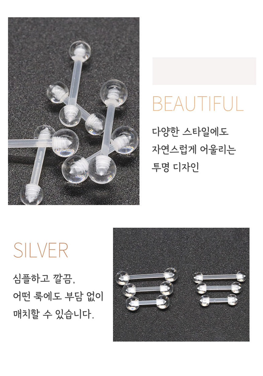 귀막힘 방지 살튀 투명 피어싱 귀 아크릴 볼 남자 플라스틱 연골 얇은 귓볼 코 인터널