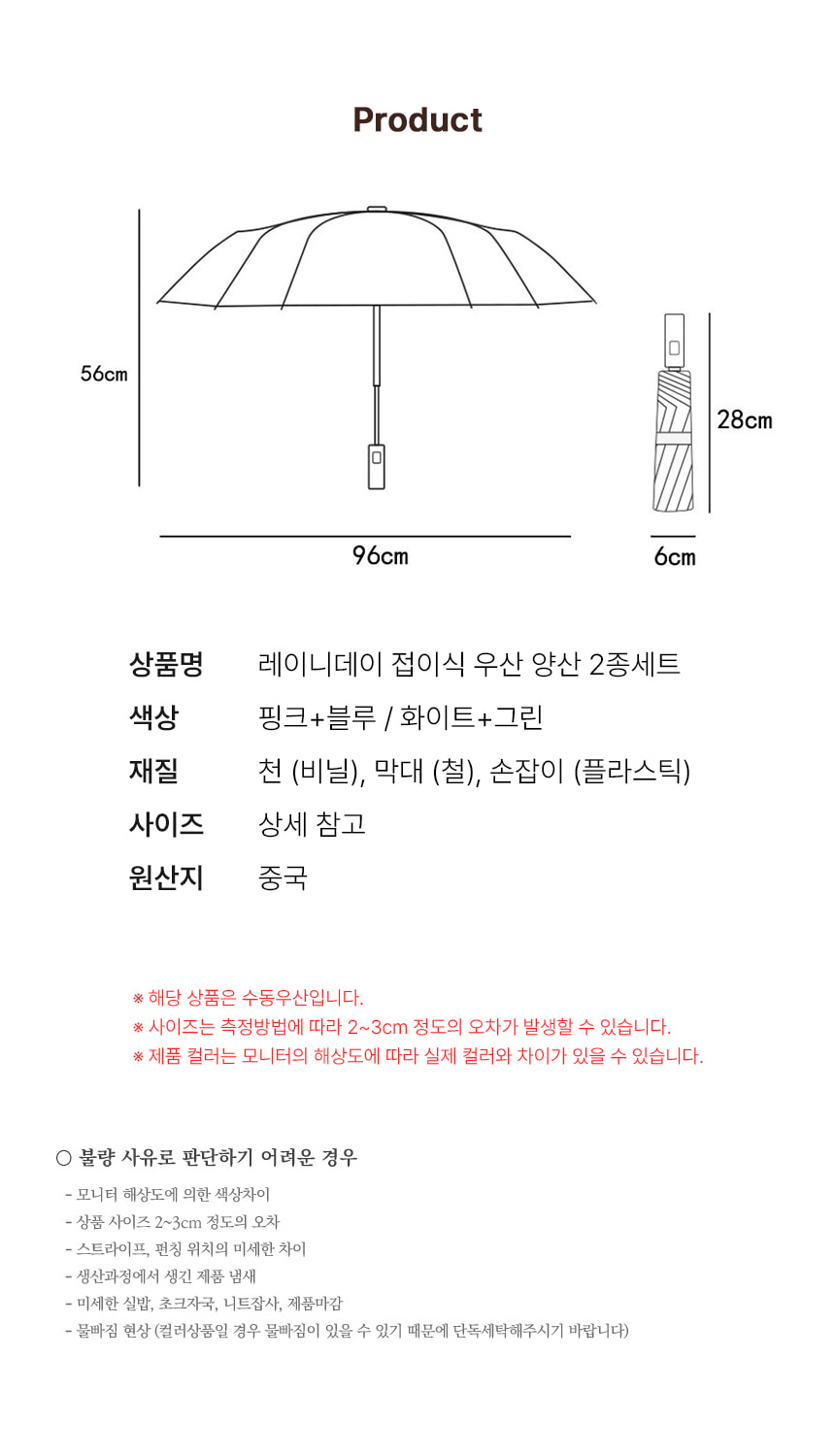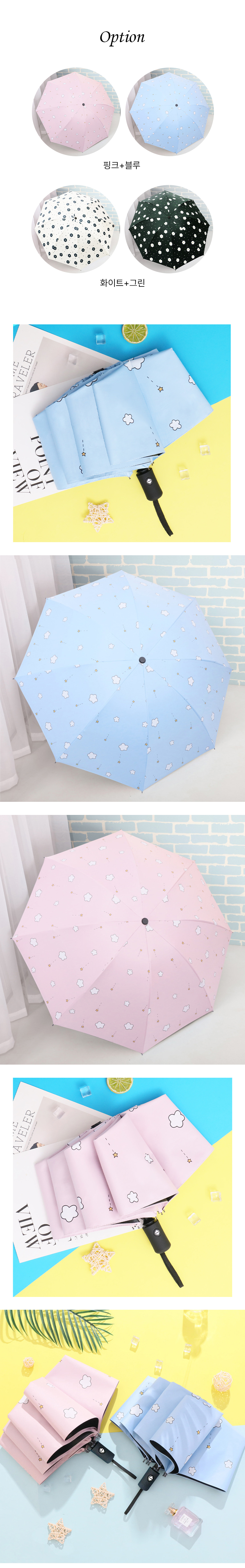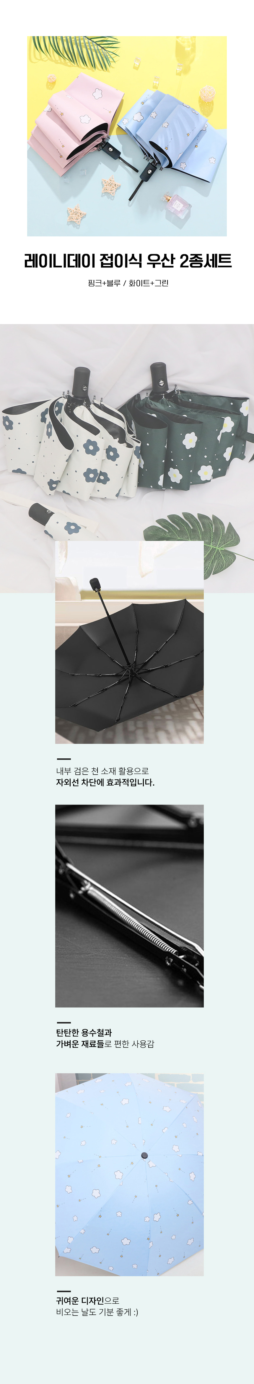 자외선차단 수동 접이식 접는 우산 2개 화이트 그린
