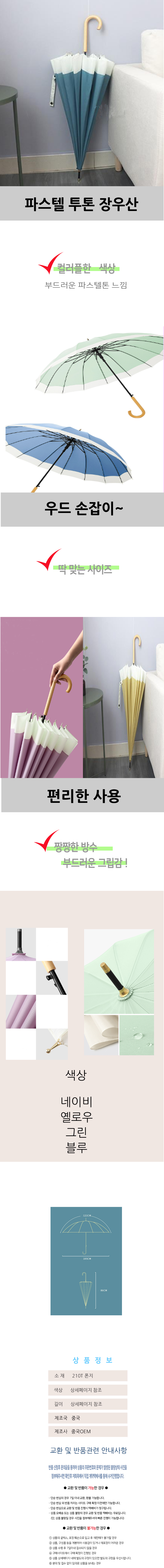 대형 장우산 우드손잡이 투톤 자동우산