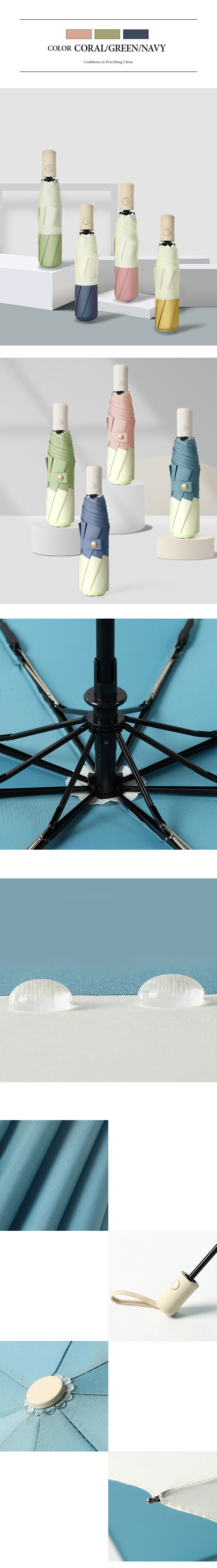 3단 자동 예쁜 접이식 여행 용 작은 양 우산 코랄