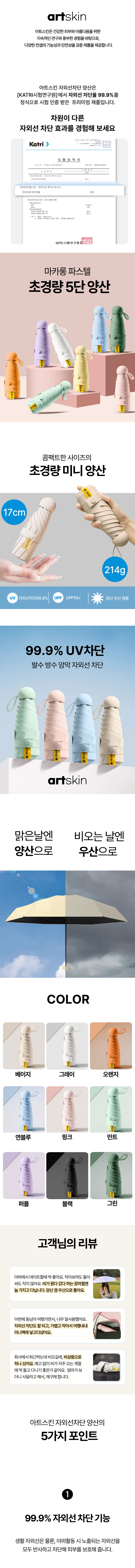 아트스킨 5단 자외선차단 양산 우산 우양산 양우산 암막양산 초경량양산 튼튼한 접이식우산