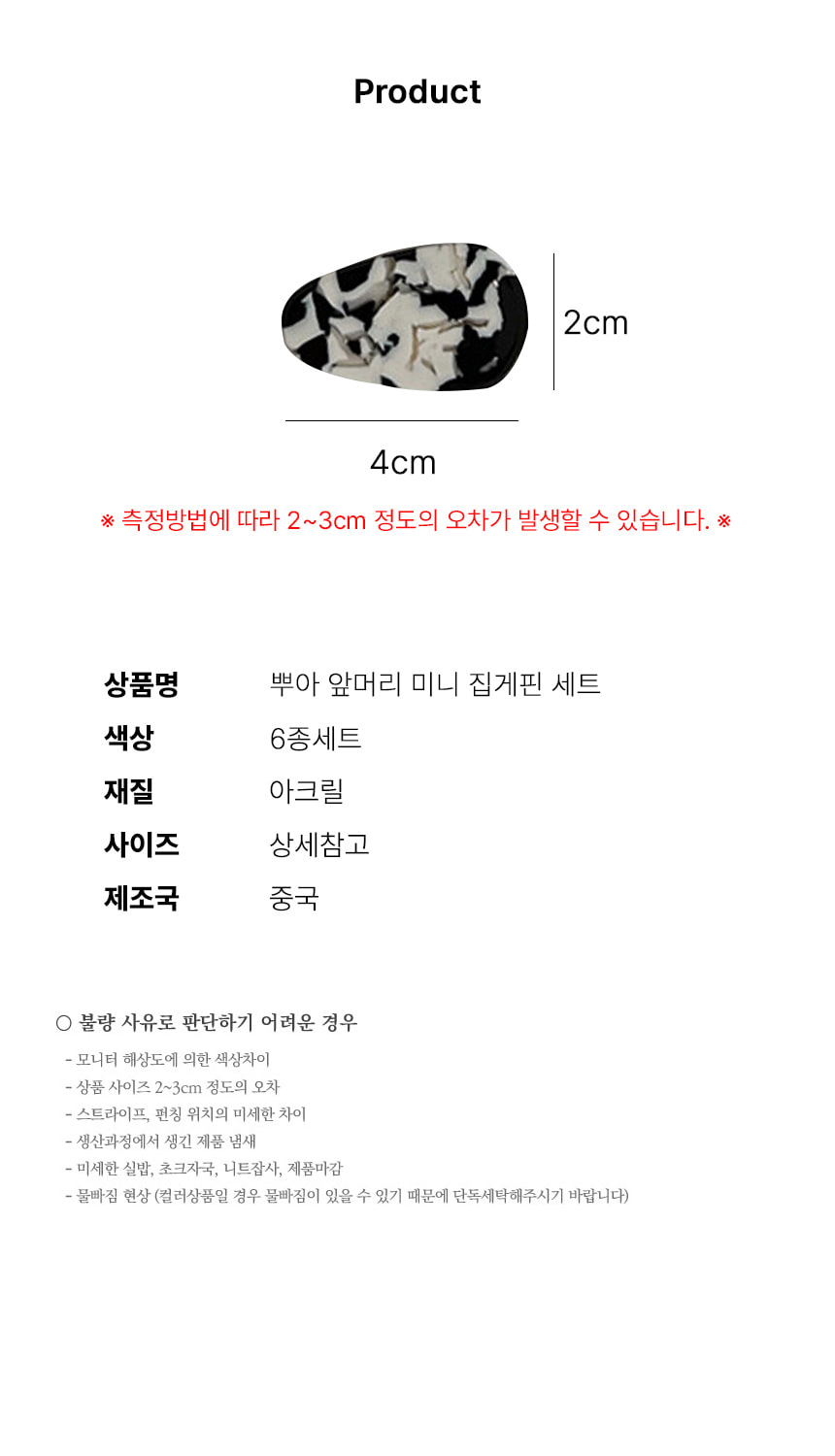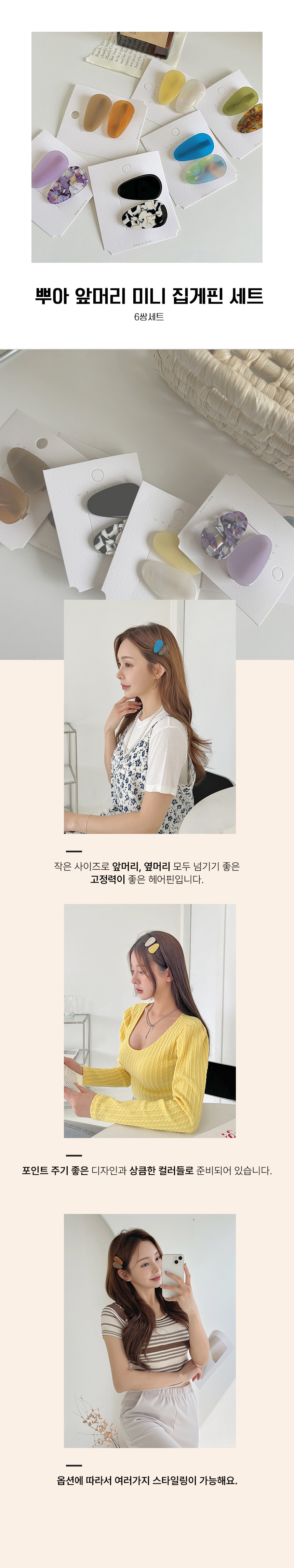 옆 앞 머리 헤어 미니 집게 핀 6쌍 세트 혼합색상