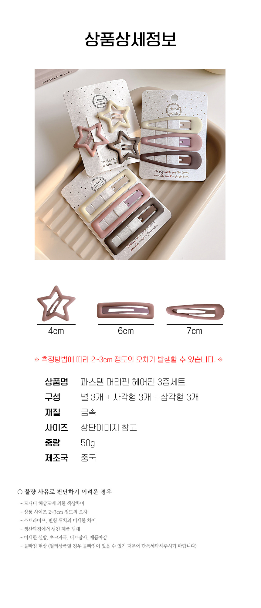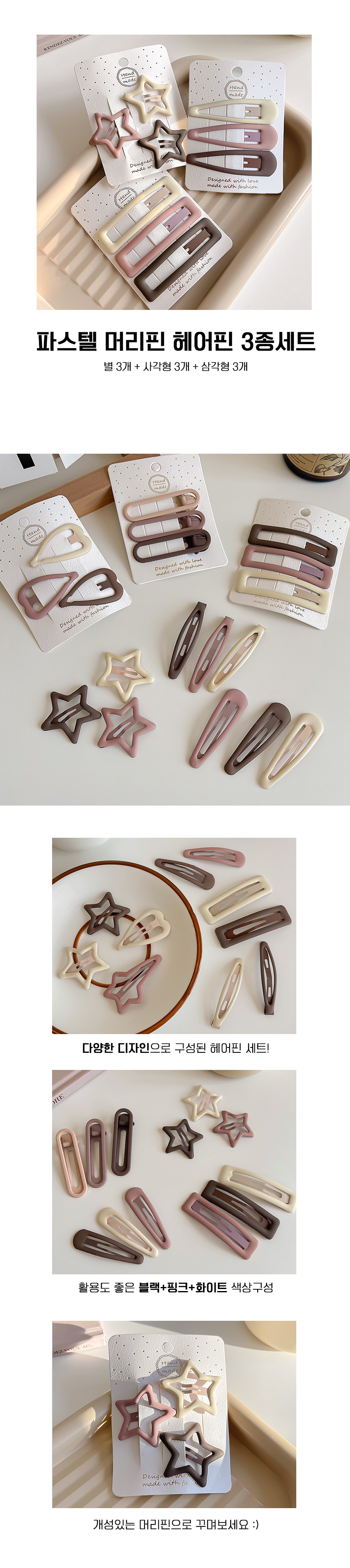 앞 옆 잔 머리 고정 컬러 헤어 삔 머리 핀 9p 세트