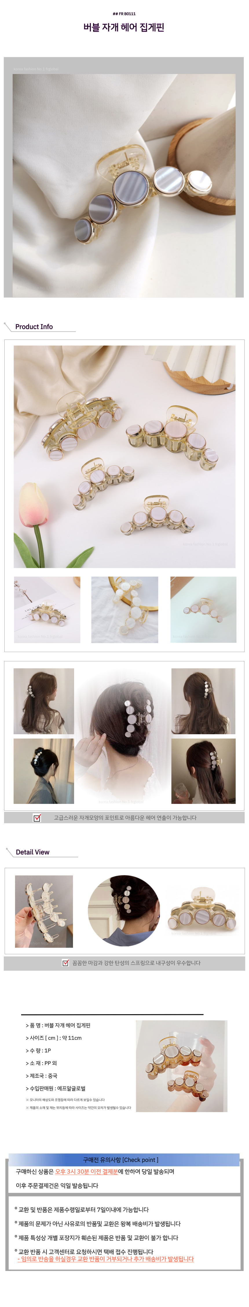 버블 자개 헤어 집게핀
