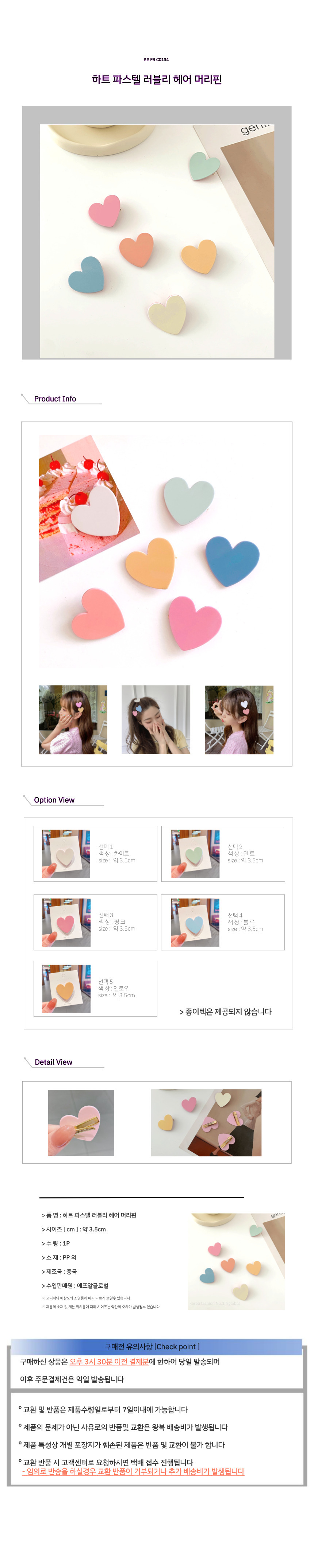 하트 파스텔 러블리 헤어 머리핀