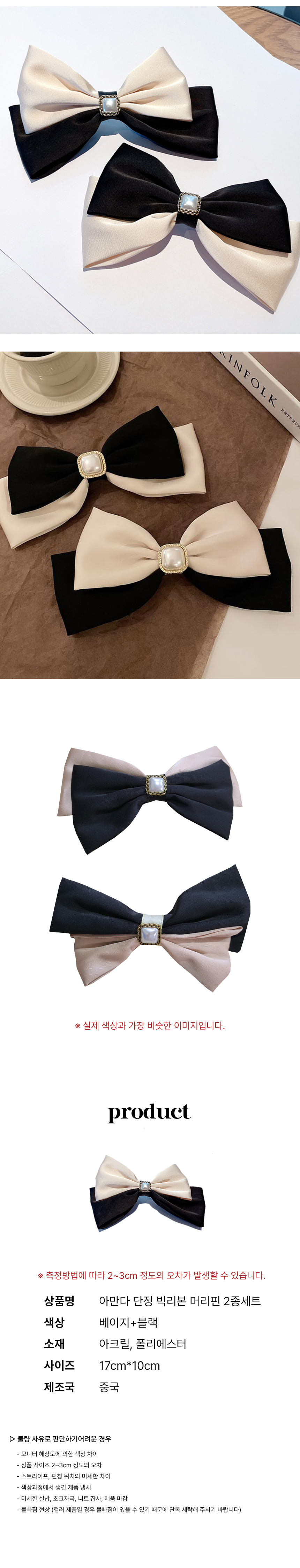 긴 머리 핀 반묶음 큰 왕 리본 빅 헤어 삔 2종 세트