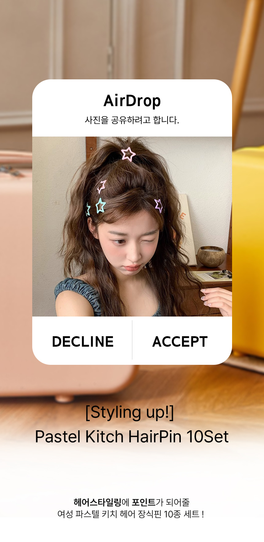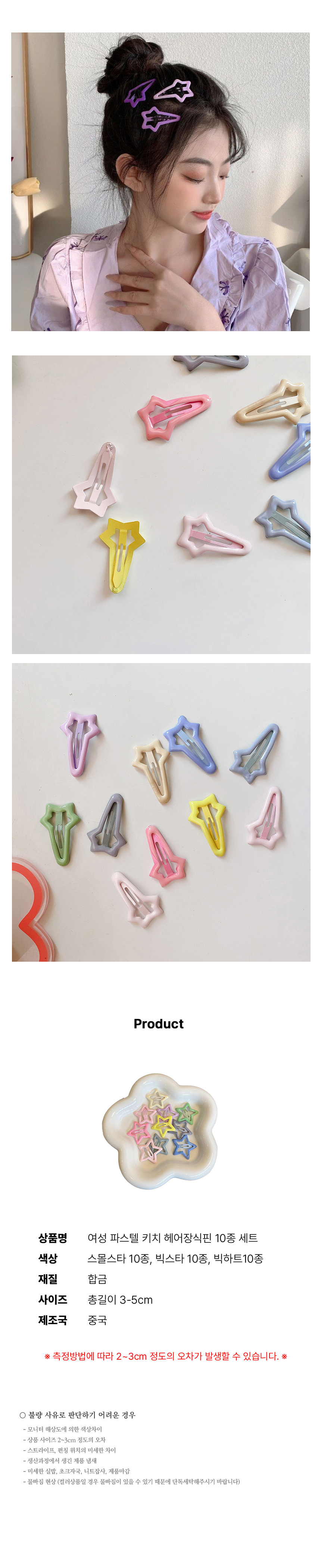 앞 옆 머리 고정 핀 헤어 장식 삔 10p 세트 빅하트