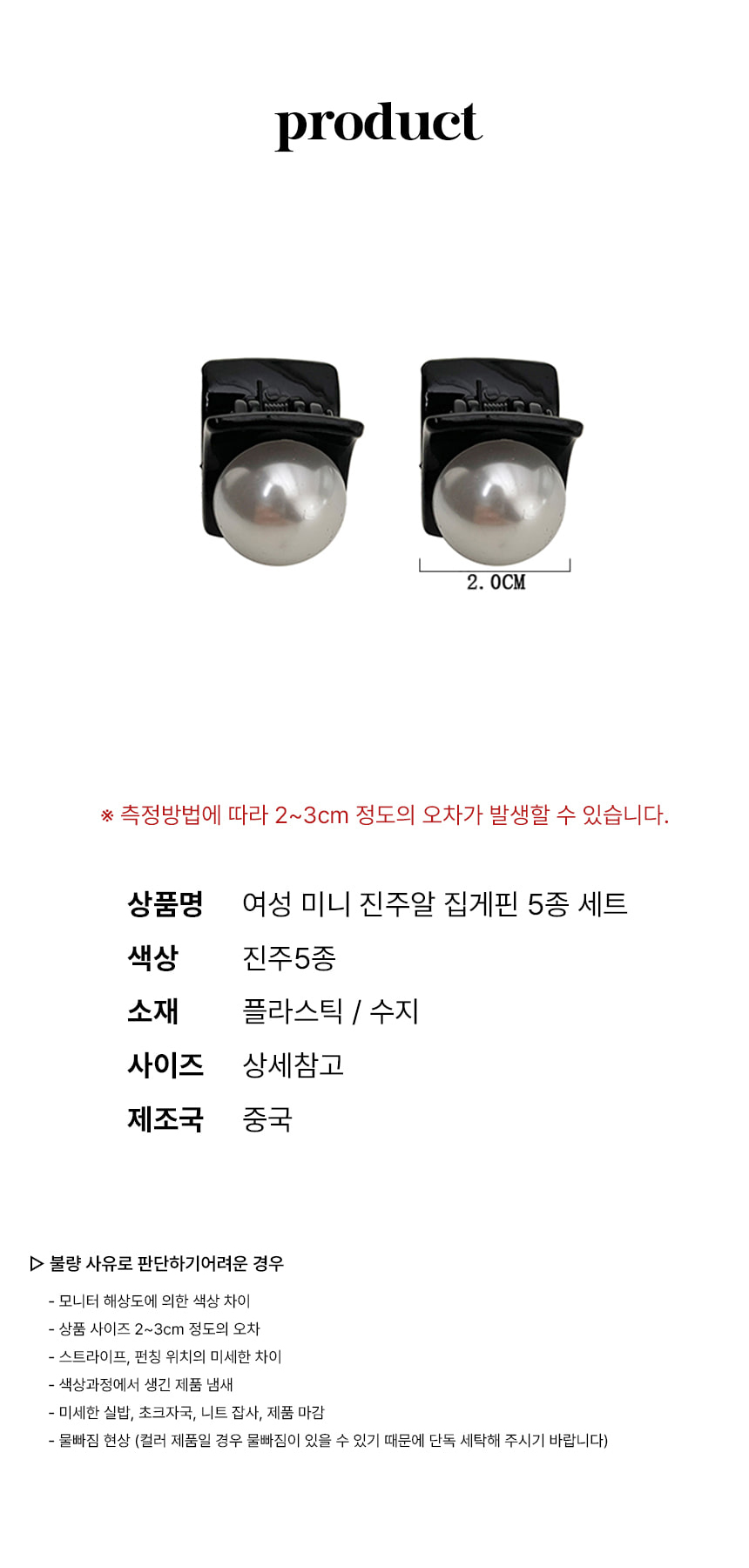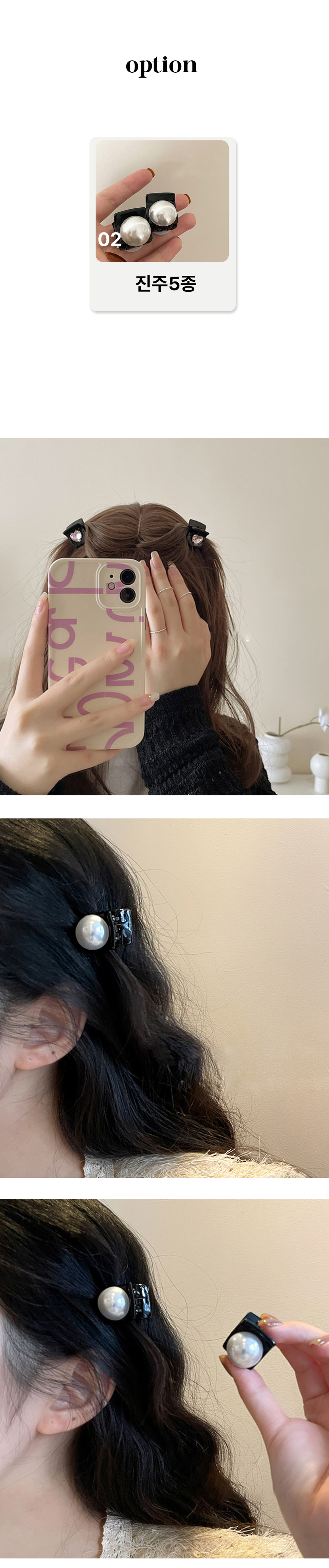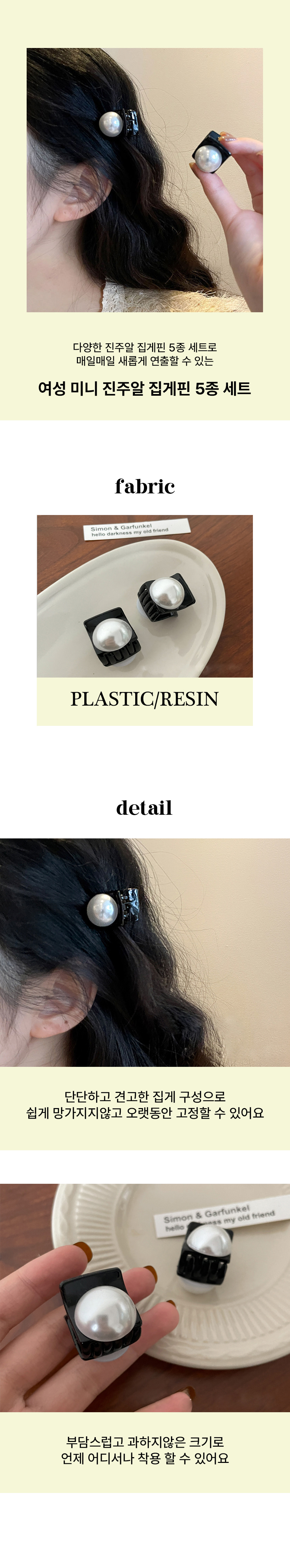 옆 앞 머리 삔 진주 헤어 장식 미니 집게 핀 5종 세트