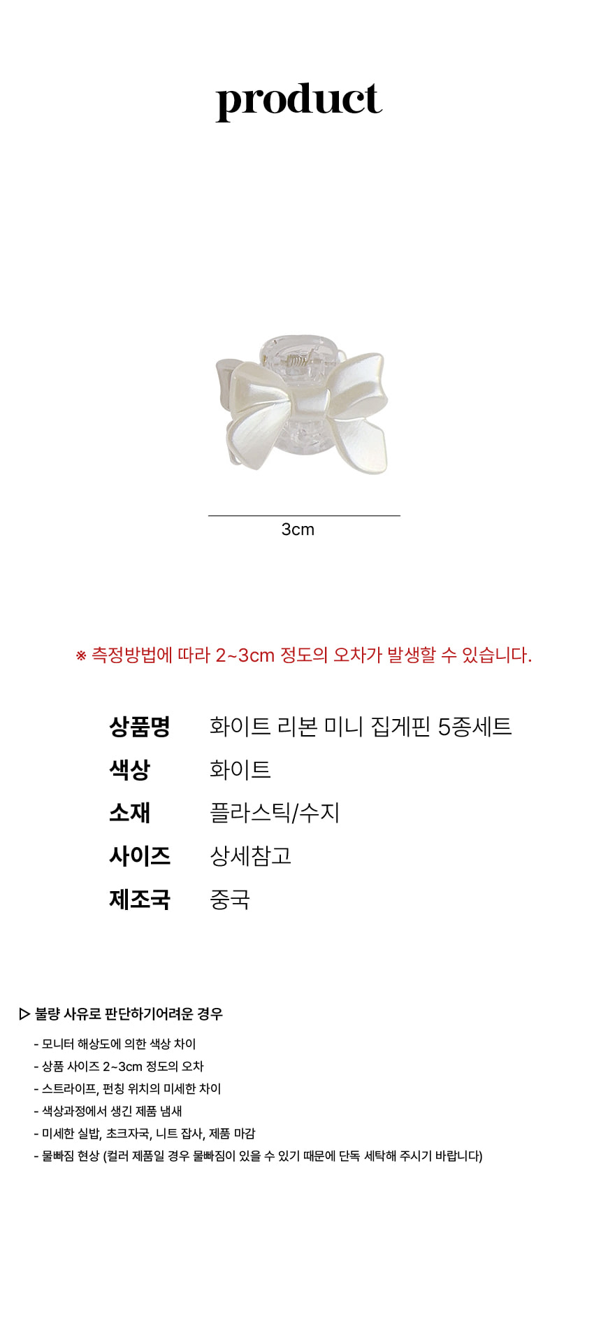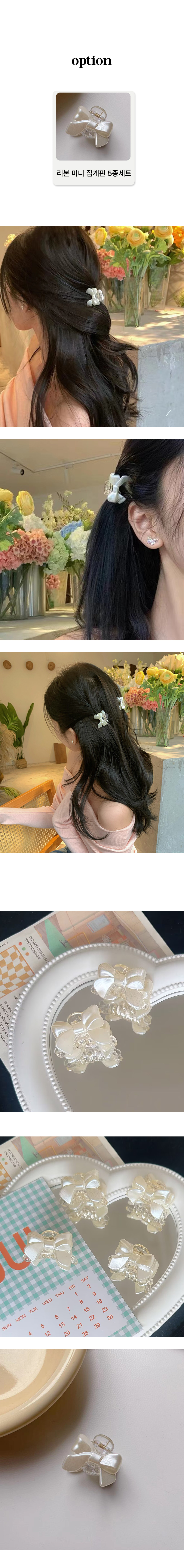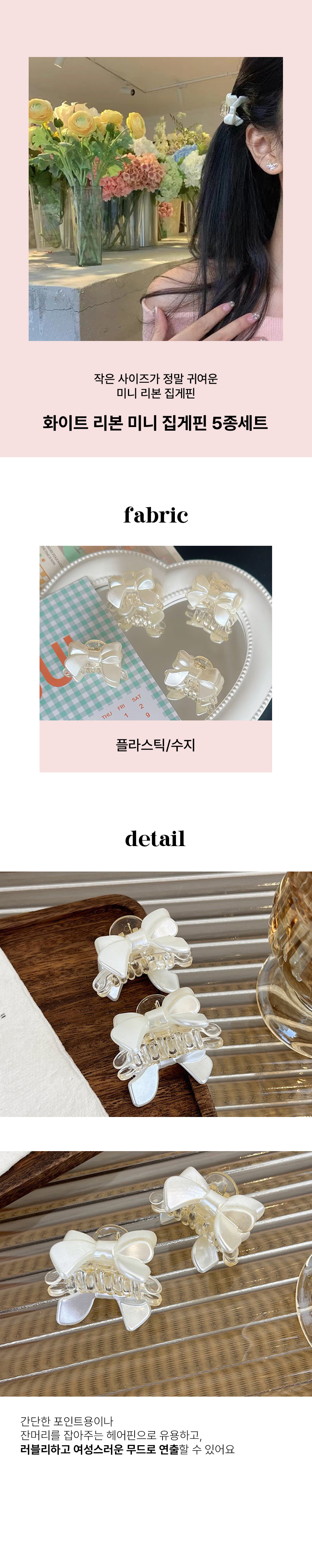 미니 리본 집게 핀 옆 앞 머리 삔 헤어 장식 5종 세트