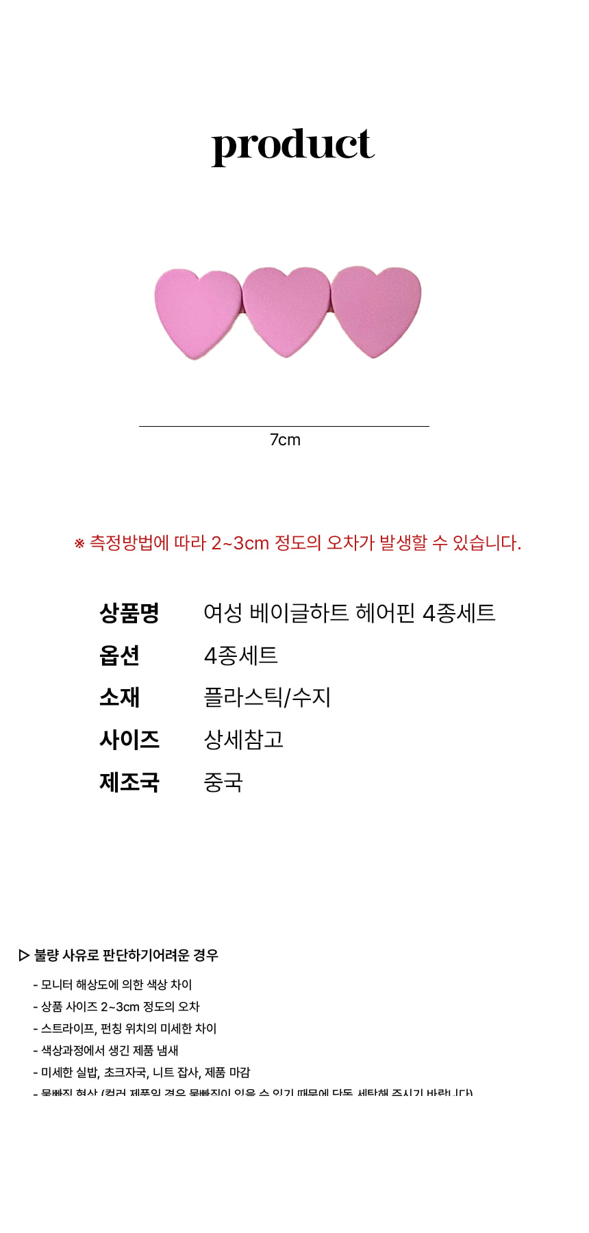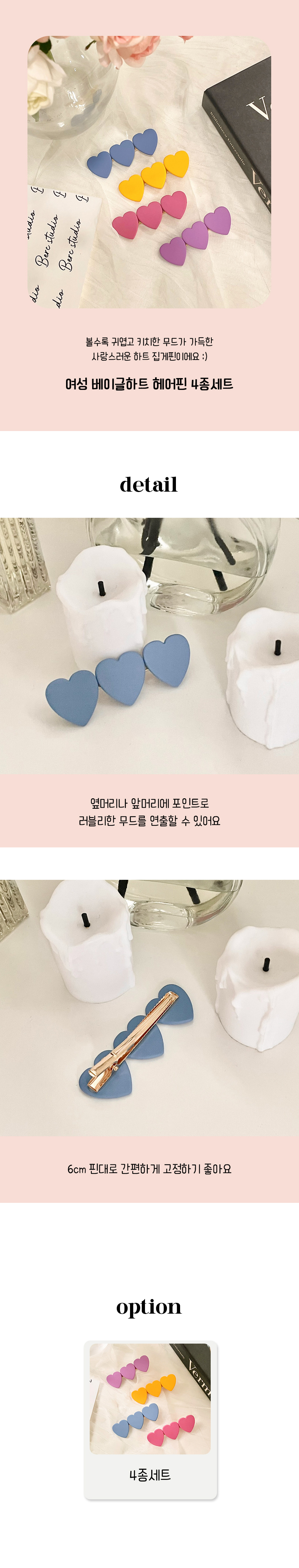 하트 앞 옆 머리 집게 핀 예쁜 헤어 삔 4종 세트
