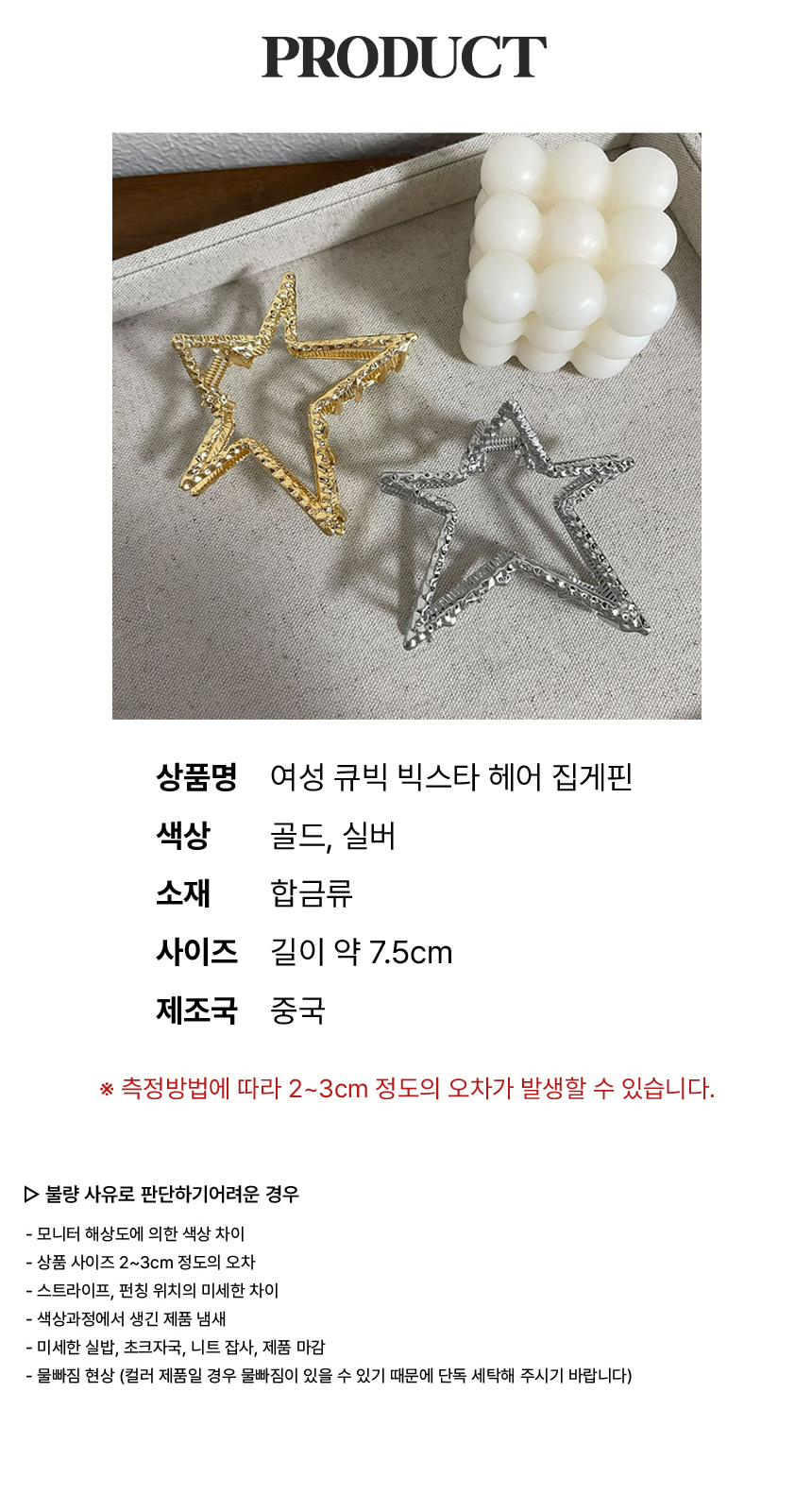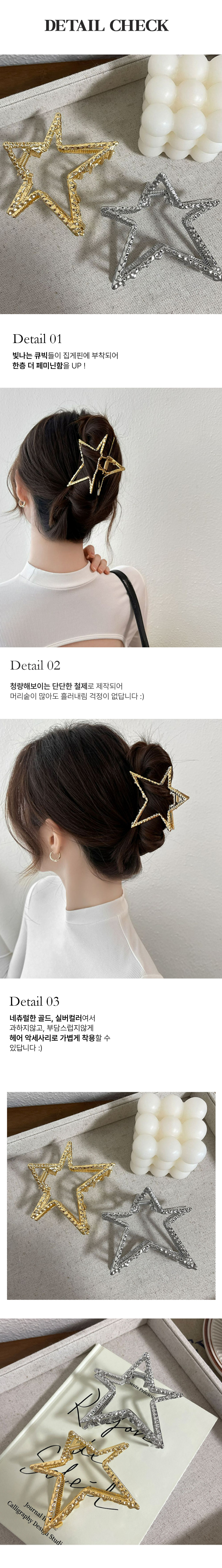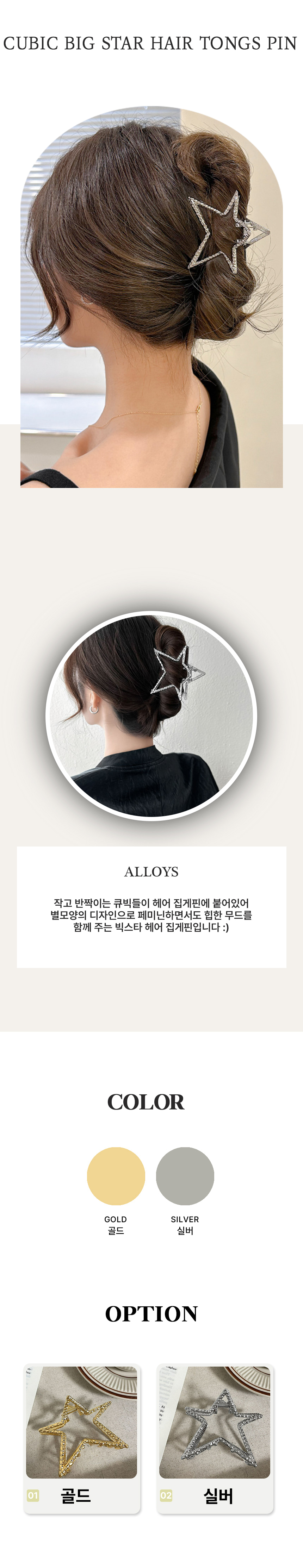 올림 머리 반 묶음 헤어 큐빅 삔 별 집게 핀 골드