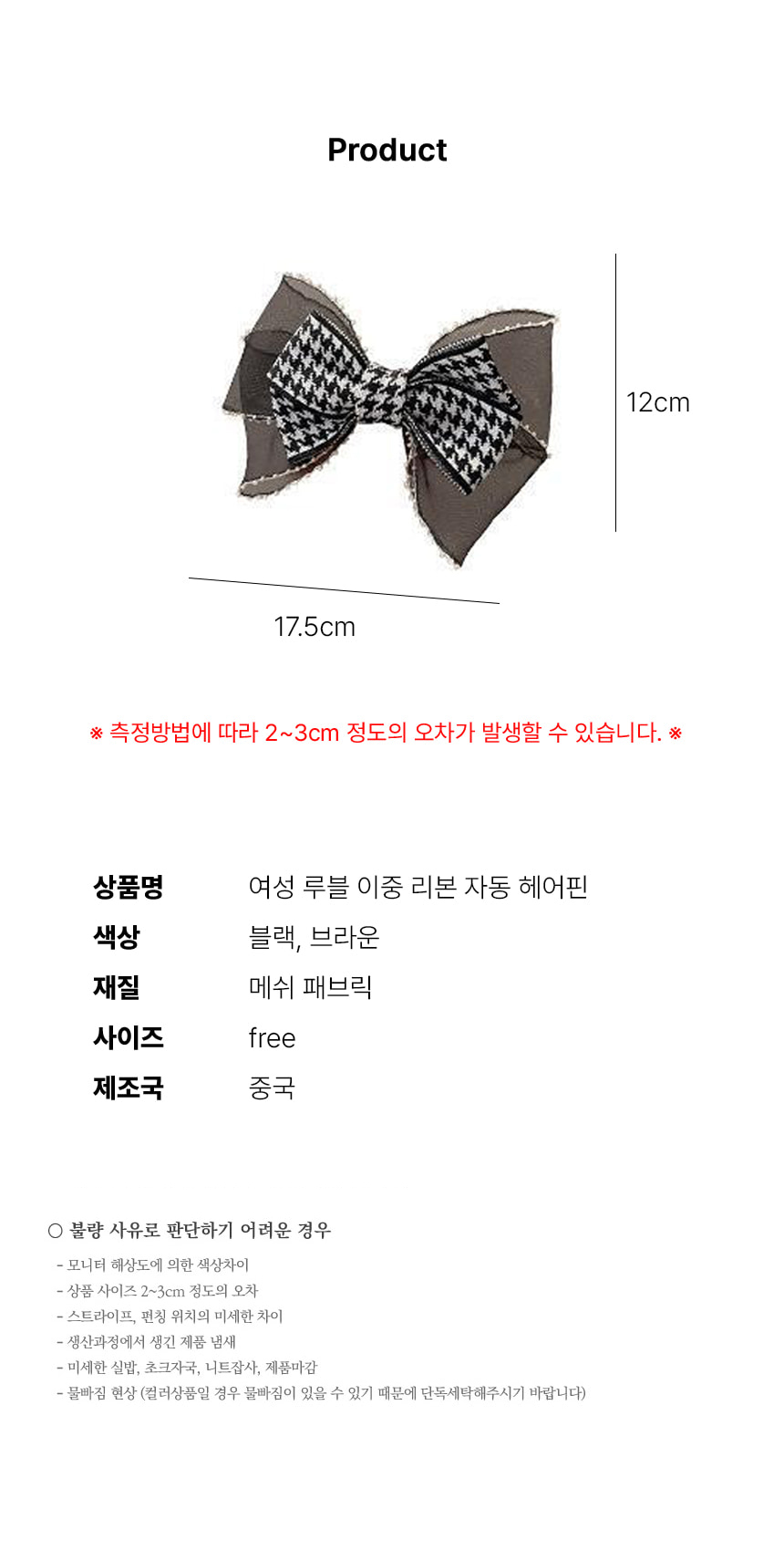 여성 헤어 왕 리본 자동 헤어 핀 머리 장식 삔