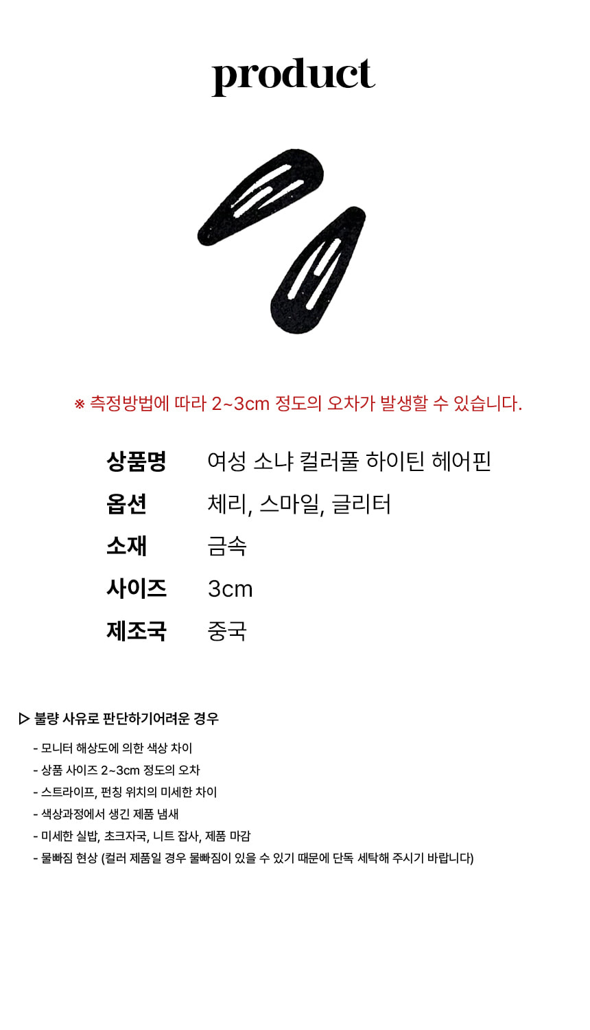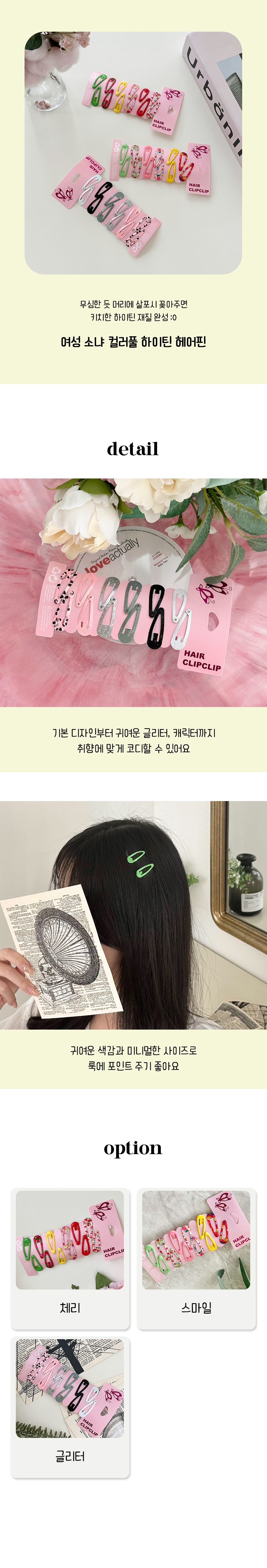컬러 똑딱 핀 미니 옆 앞 머리 헤어 장식 삔