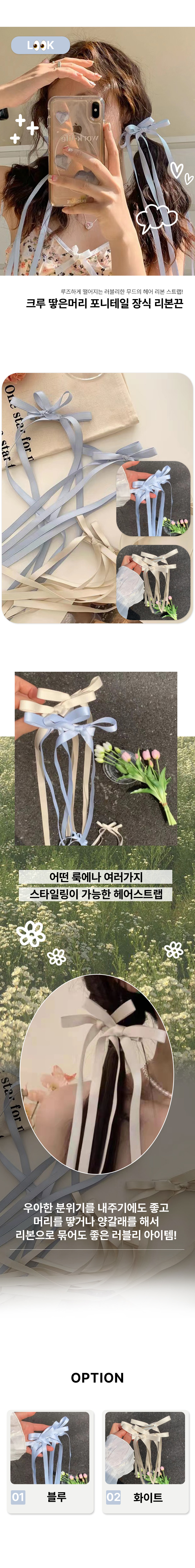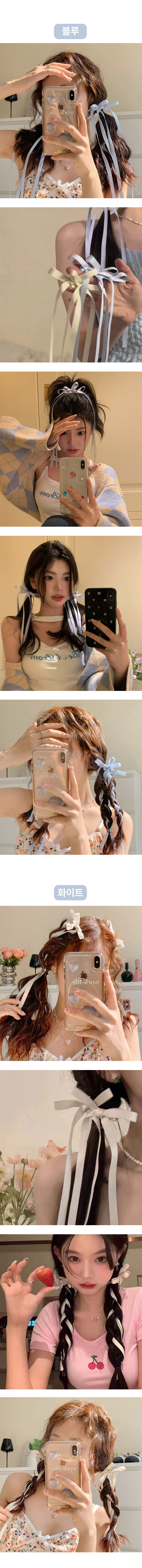 여성 스트랩 긴 머리 끈 헤어 리본 장식 화이트