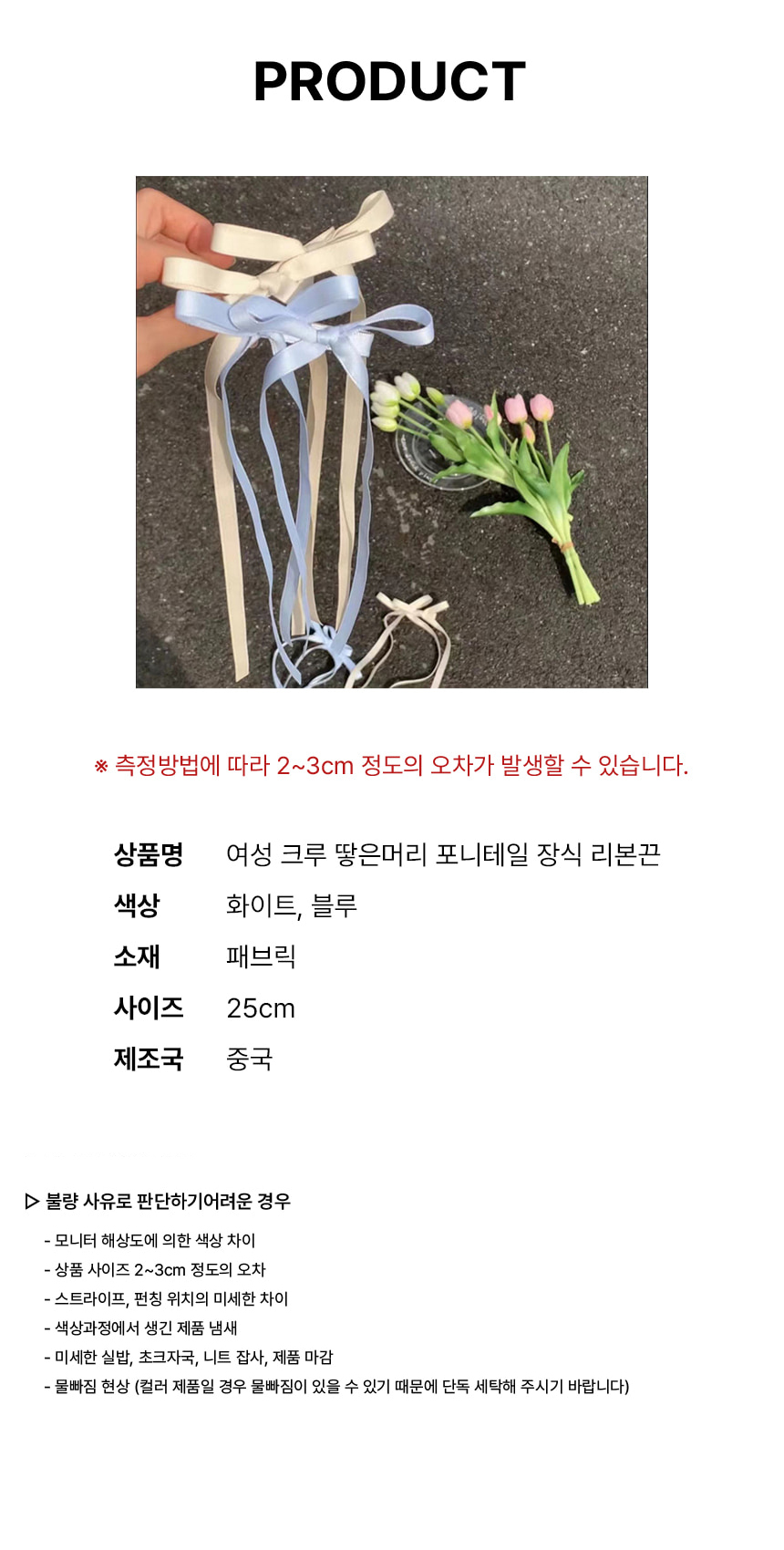 • 상품 불량/오배송인 경우 : 상품 수령 후 3개월 이내, 혹은 그 사실을 알게 된 이후 30일 이내 반품 신청 가능
