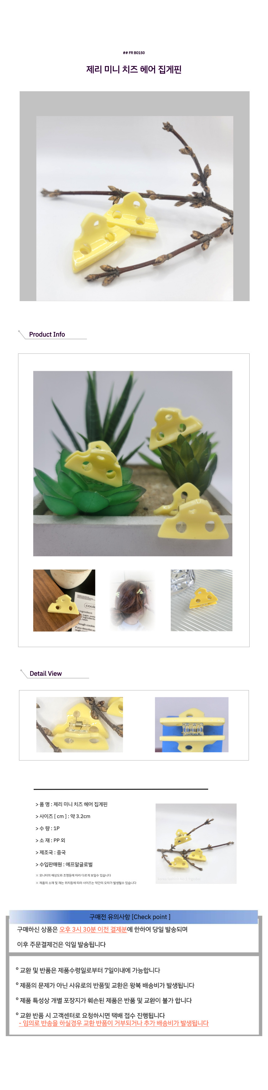 제리 미니 치즈 헤어 집게핀