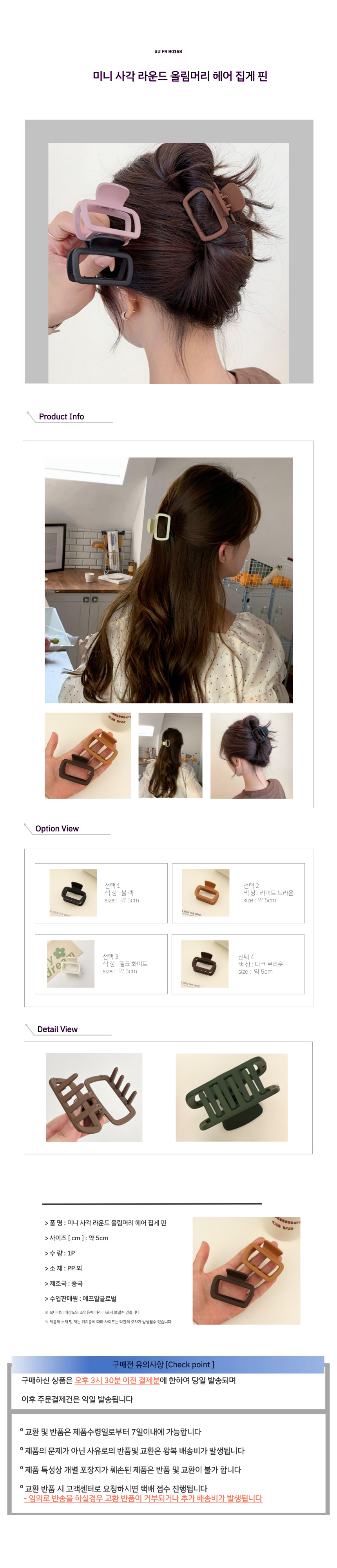 미니 사각 라운드 올림머리 헤어 집게 핀