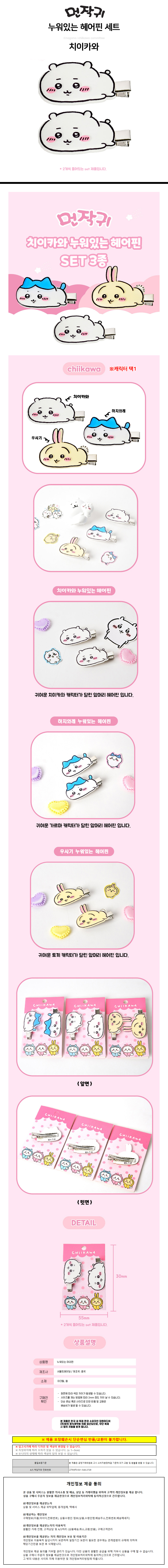 서울트레이딩 헤어핀 먼작귀 누워있는 머리핀 세트 (치이카와)