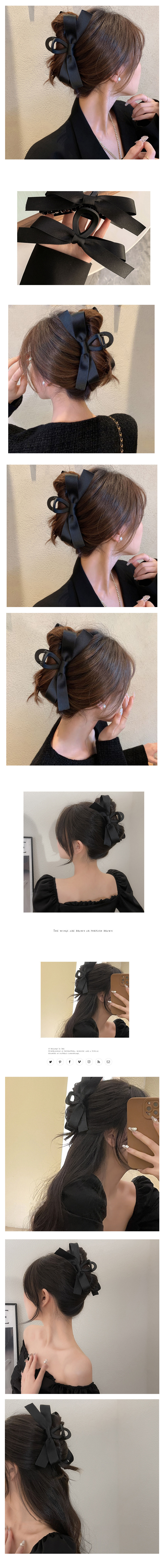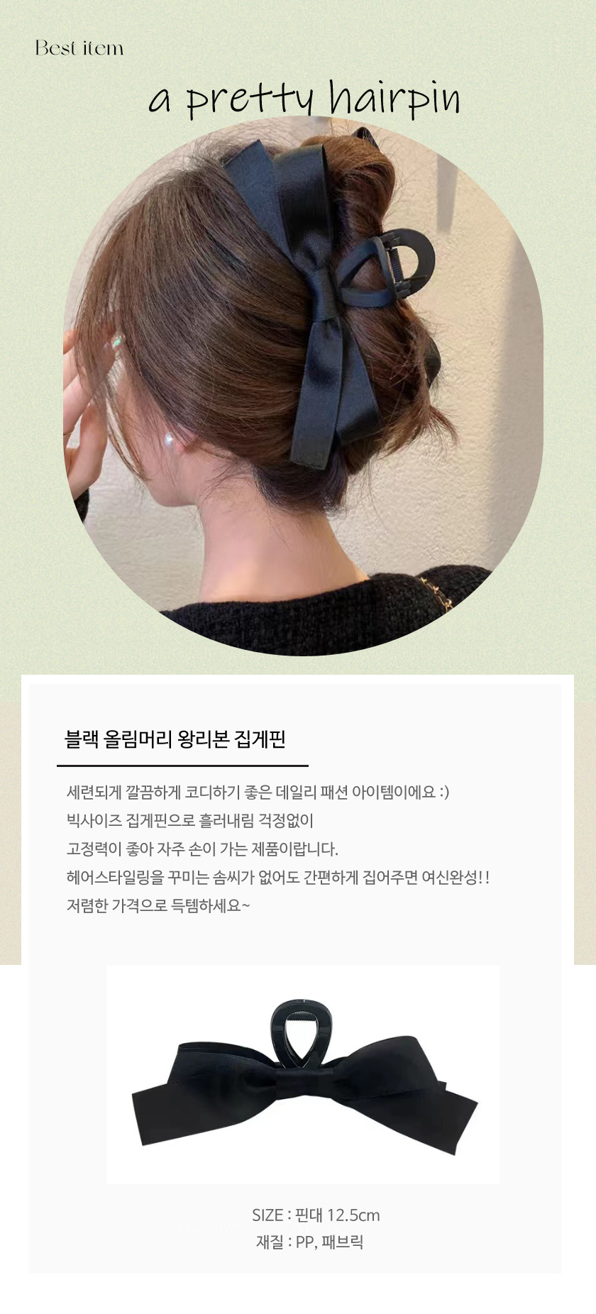 올림 머리 반 묶음 왕 리본 헤어 집게 핀 블랙