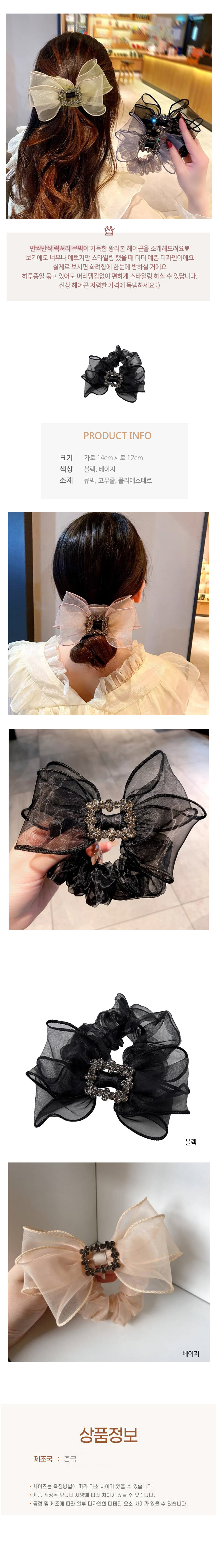 여자 당고 똥 머리 왕 리본 큐빅 곱창 헤어 끈 베이지