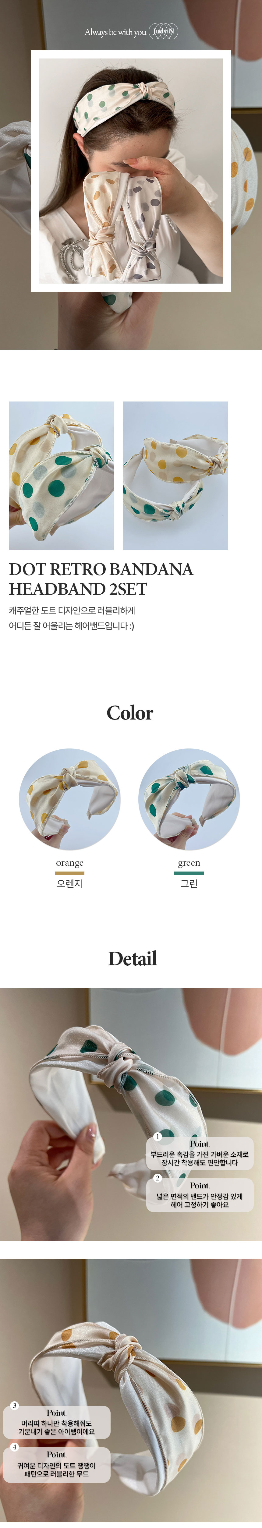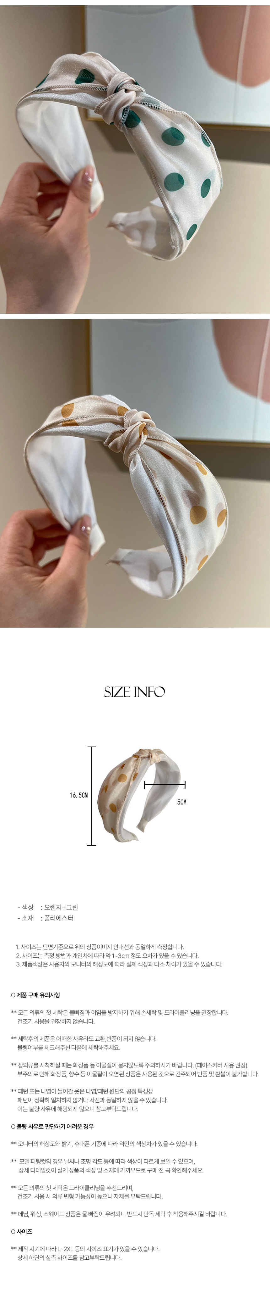 여성 헤어 밴드 도트 넓은 반다나 머리띠 2개 세트