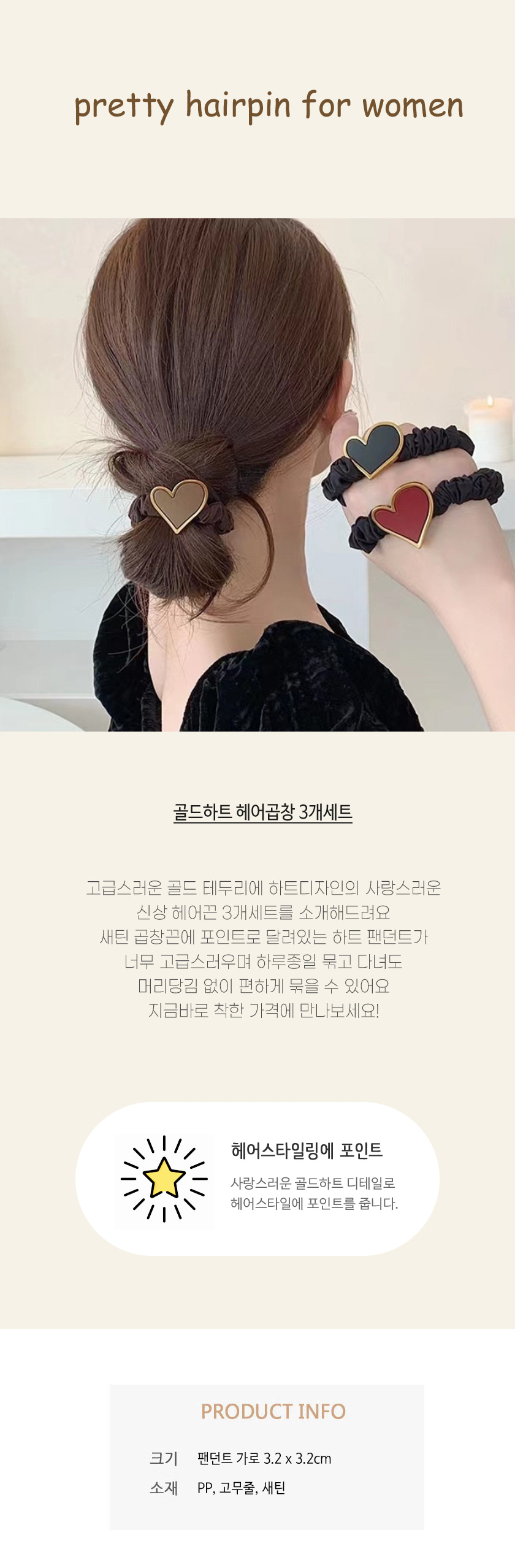 예쁜 하트 헤어 곱창 밴드 당고 똥 머리 끈 3개 세트