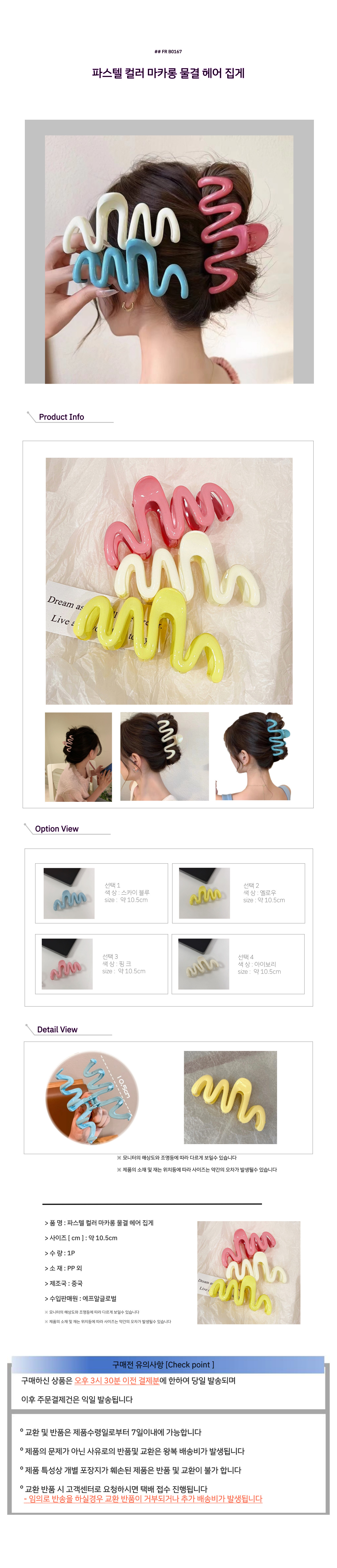 파스텔 컬러 마카롱 물결 헤어 집게