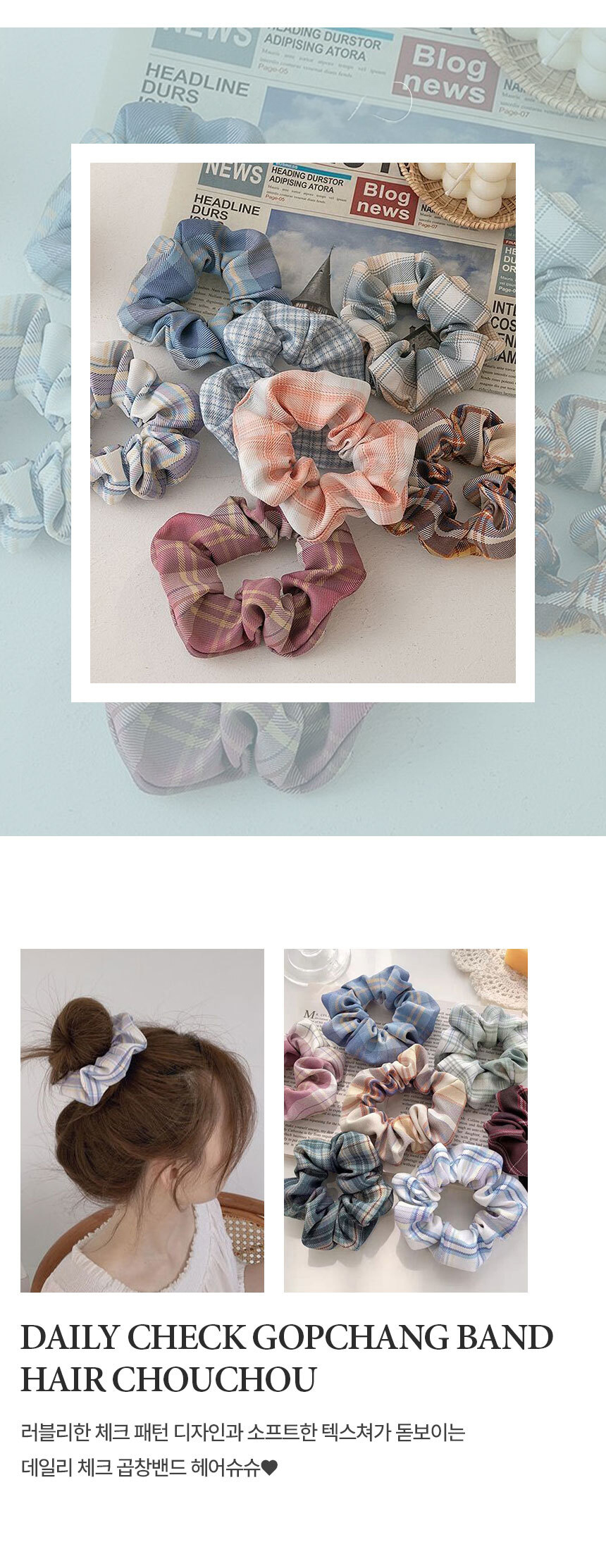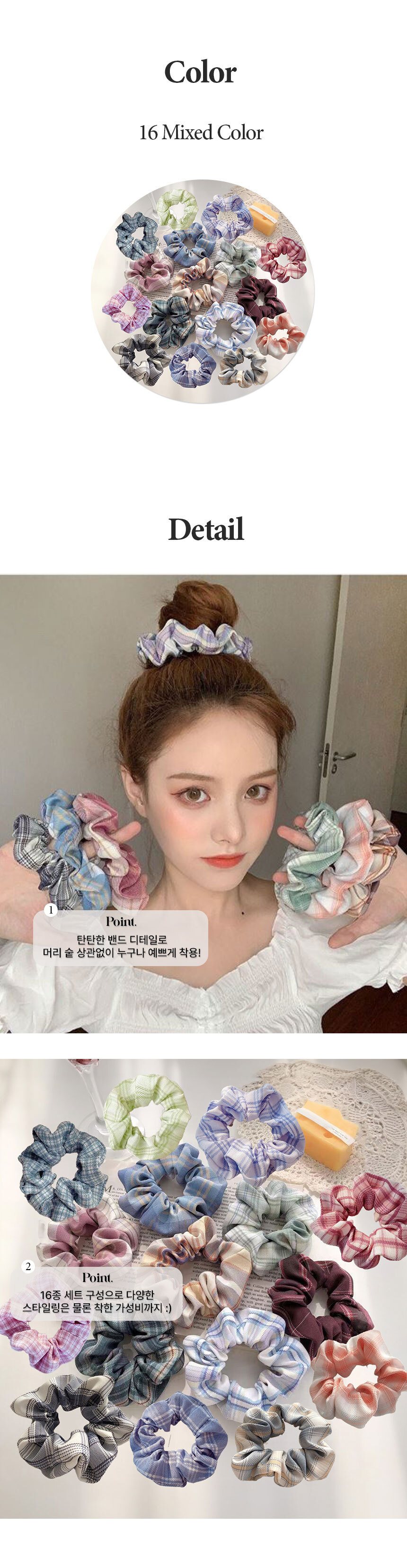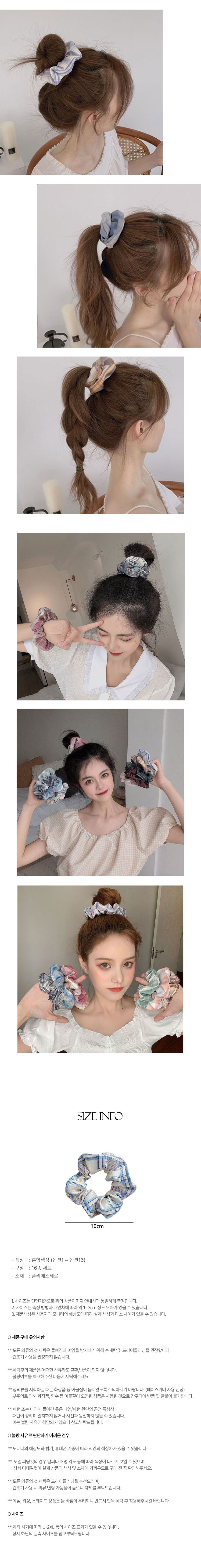체크 곱창 밴드 헤어 슈슈 끈 16p 세트 머리 스크런치