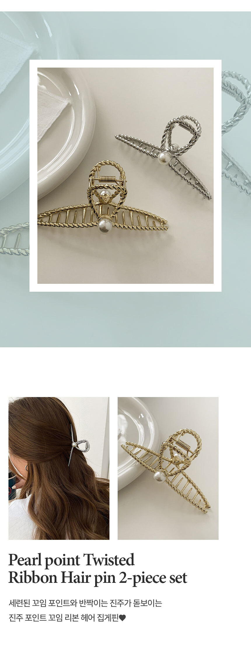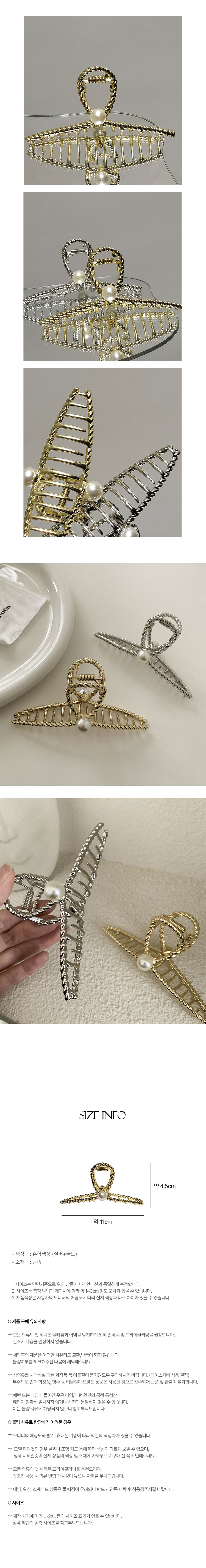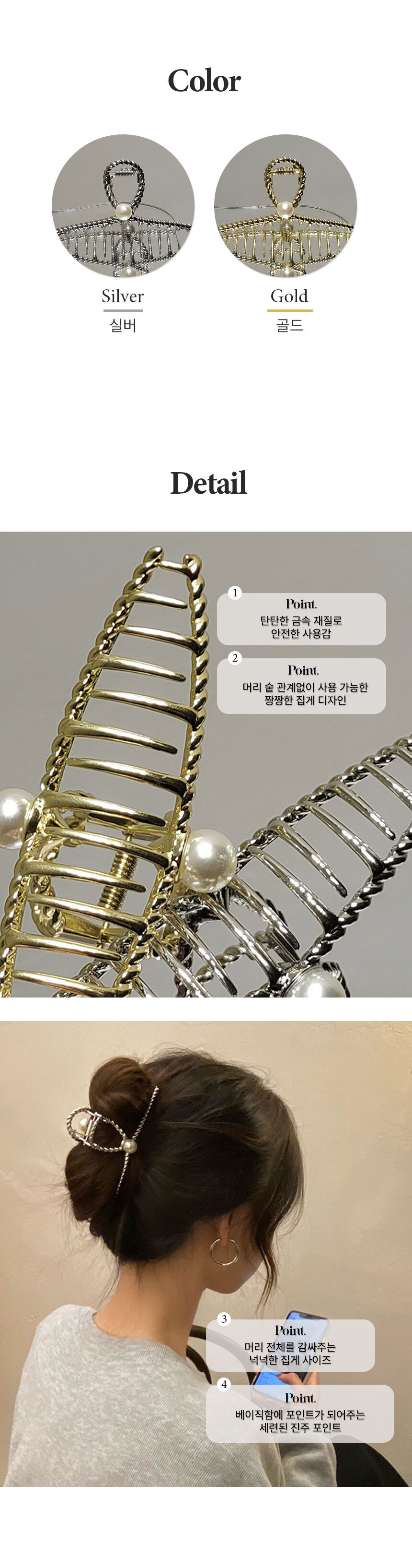 여성 진주 메탈 집게핀 포니테일 올림 머리 삔 2개set