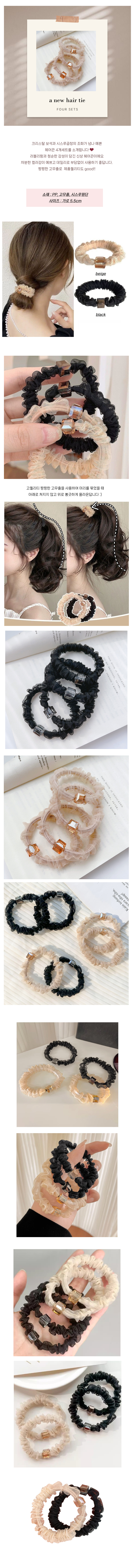 여성 시스루 곱창 로우번 똥 헤어 머리 끈 4p 블랙