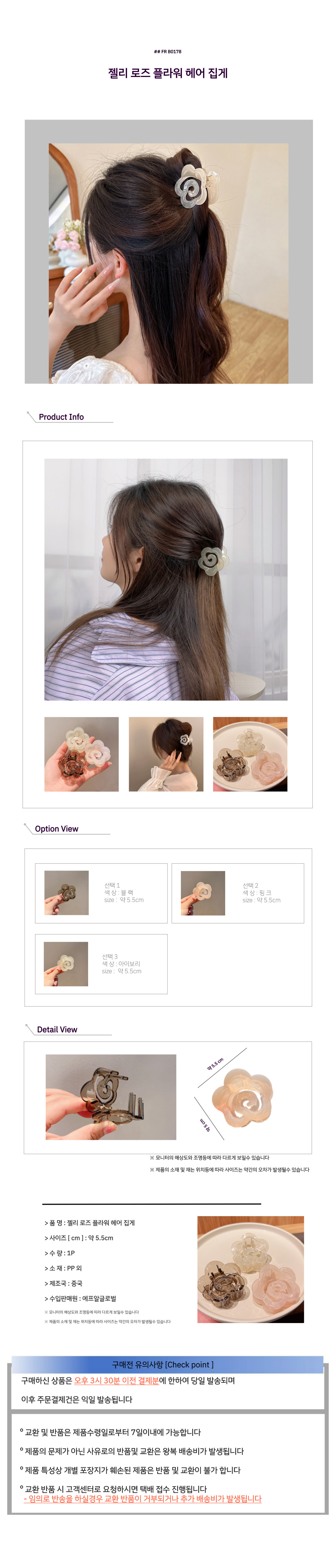 젤리 로즈 플라워 헤어 집게