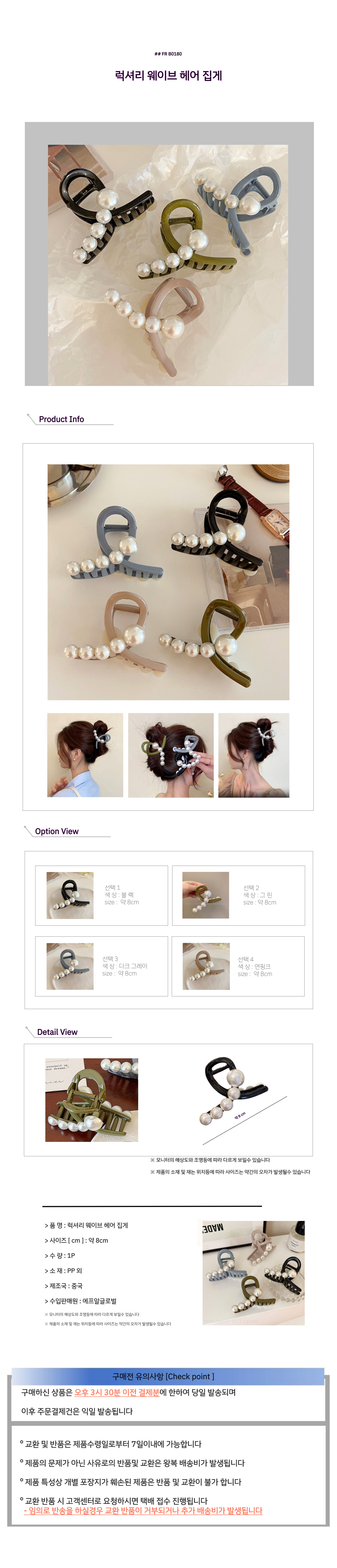 꼬임 진주 럭셔리 헤어 집게