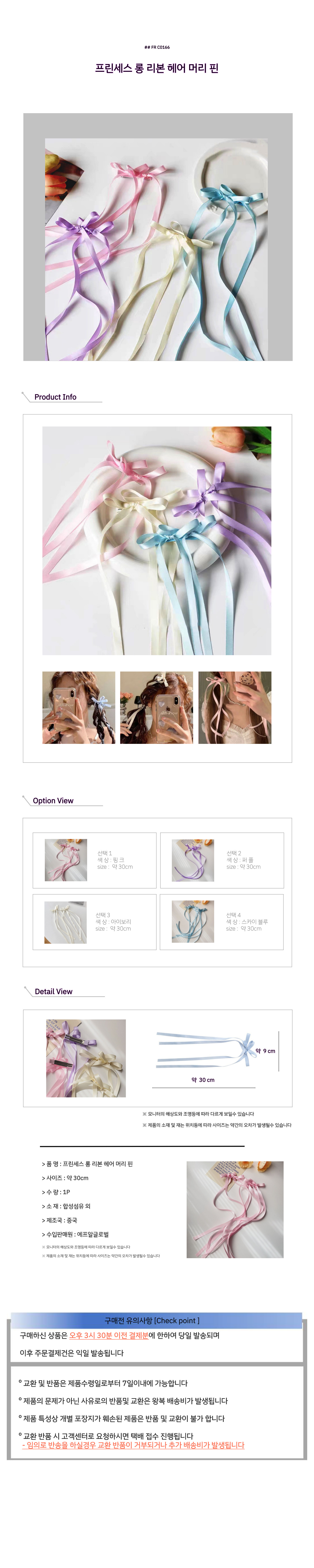 프린세스 롱 리본 헤어 머리 핀
